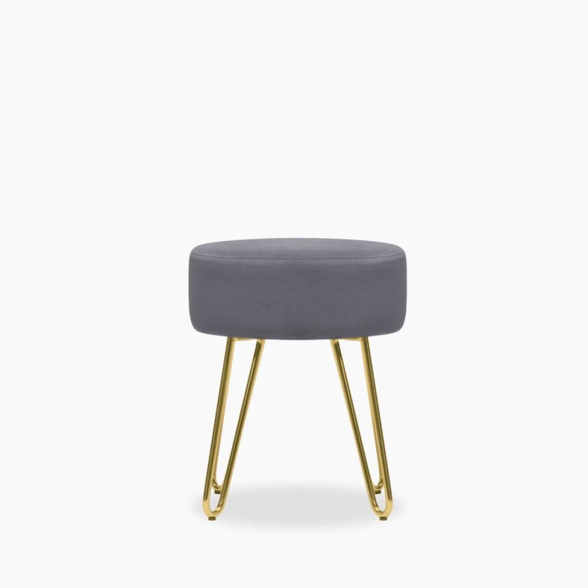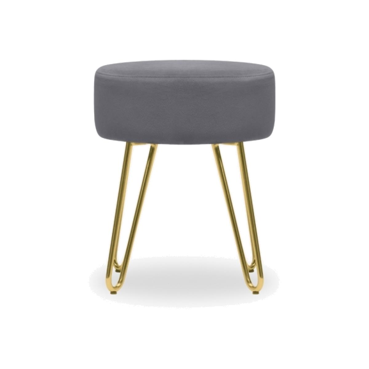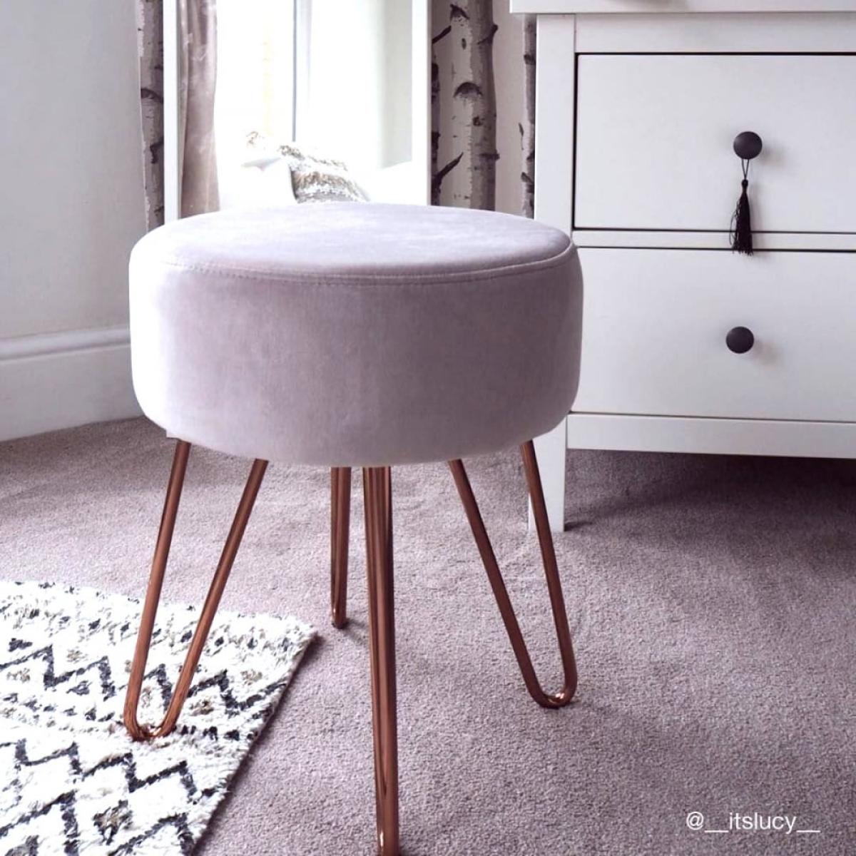 I love this little stool for its versatility and understated elegance. The grey velvet top adds a touch of softness and sophistication, making it suitable for both modern and classic interiors. It works particularly well in living rooms as a footrest or extra seating, but also as a stylish side table in a bedroom or dressing area. Styling tips include pairing it with contemporary furniture for a sleek look, or contrasting it with richer textures like leather or wood for added warmth. The gold legs bring a subtle glamour, so it’s a great piece to elevate a neutral palette without overpowering the space. Practical for compact areas, it’s a smart addition that combines function with fashion.