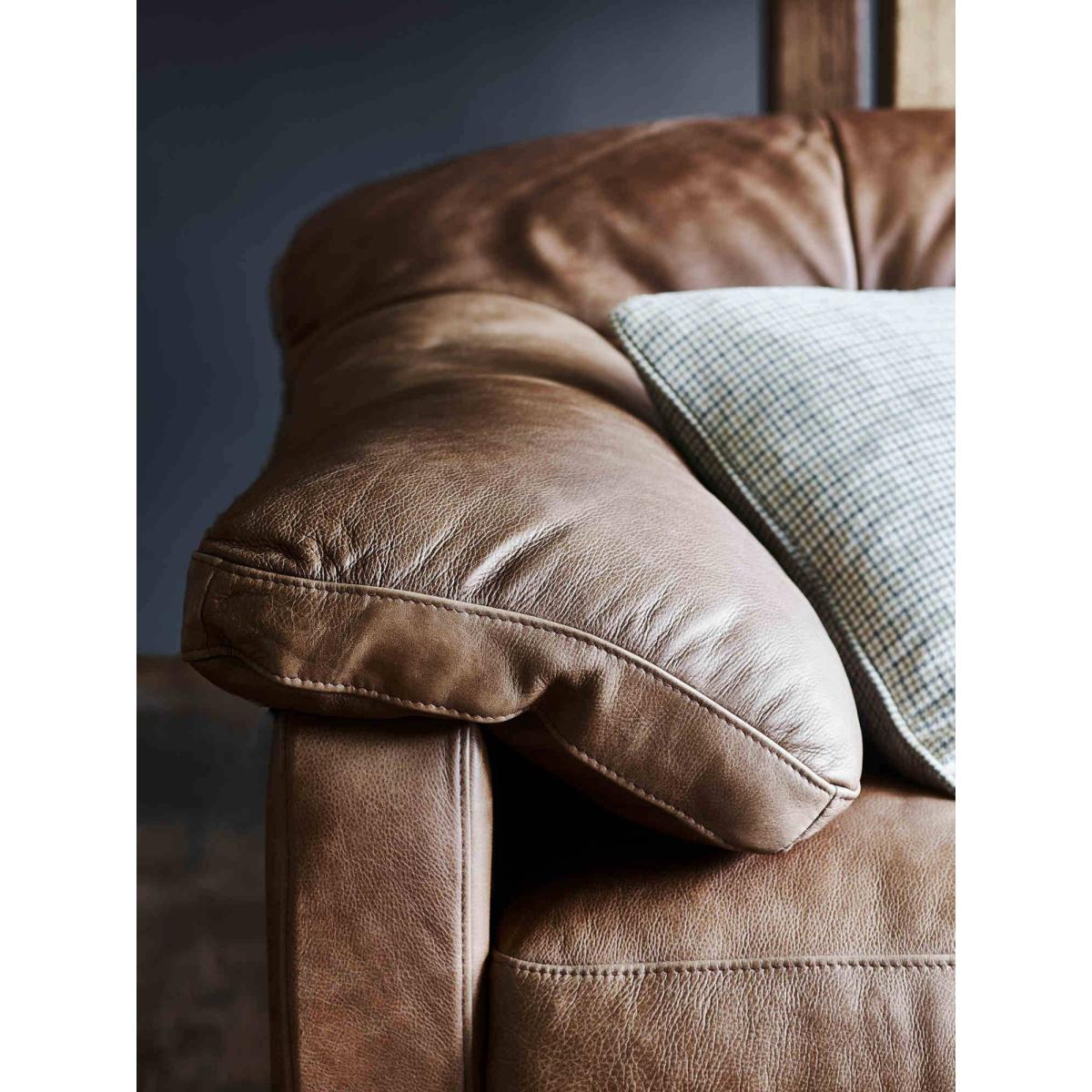 A masterpiece in retro-inspired design. It will literally feel like you are 'floating on air' thanks to a comfortable foam core in the seat cushion for central resilience that is surrounded by a wrap of feathers for the ultimate in comfort. The deep feather filled back provides sink in comfort. With the Bailey leather upholstery collection from Alexander and James, you can lounge in total sophistication, and enjoy the large comfy arm pads and deep comfy cushions. Under the covers, as you would expect from Alexander and James, there are solid hard wood rails for structural support and a no sag spring system for comfort and support. Dimensions:W 97cm x H 90cm x D 101cm. Seat height: 51cm Available in a variety of full grain leathers and fabrics (shown here in Byron Tumbleweed leather) Frame: Solid hardwood rails Seat suspension: Zigzag springs Back suspension: High resilient elasticated tensioned webbed back Seat cushion: Foam with feather wrap Back cushion: Feather and fibre mix Arm pads: Feather and fibre mix All screens vary in colour reproduction and whilst every effort has been made to display the colour as accurately as possible it is for guidance only. Please also bear in mind that leather is a natural product. No two hides are exactly the same and there may be subtle shade variation between pieces which is perfectly normal