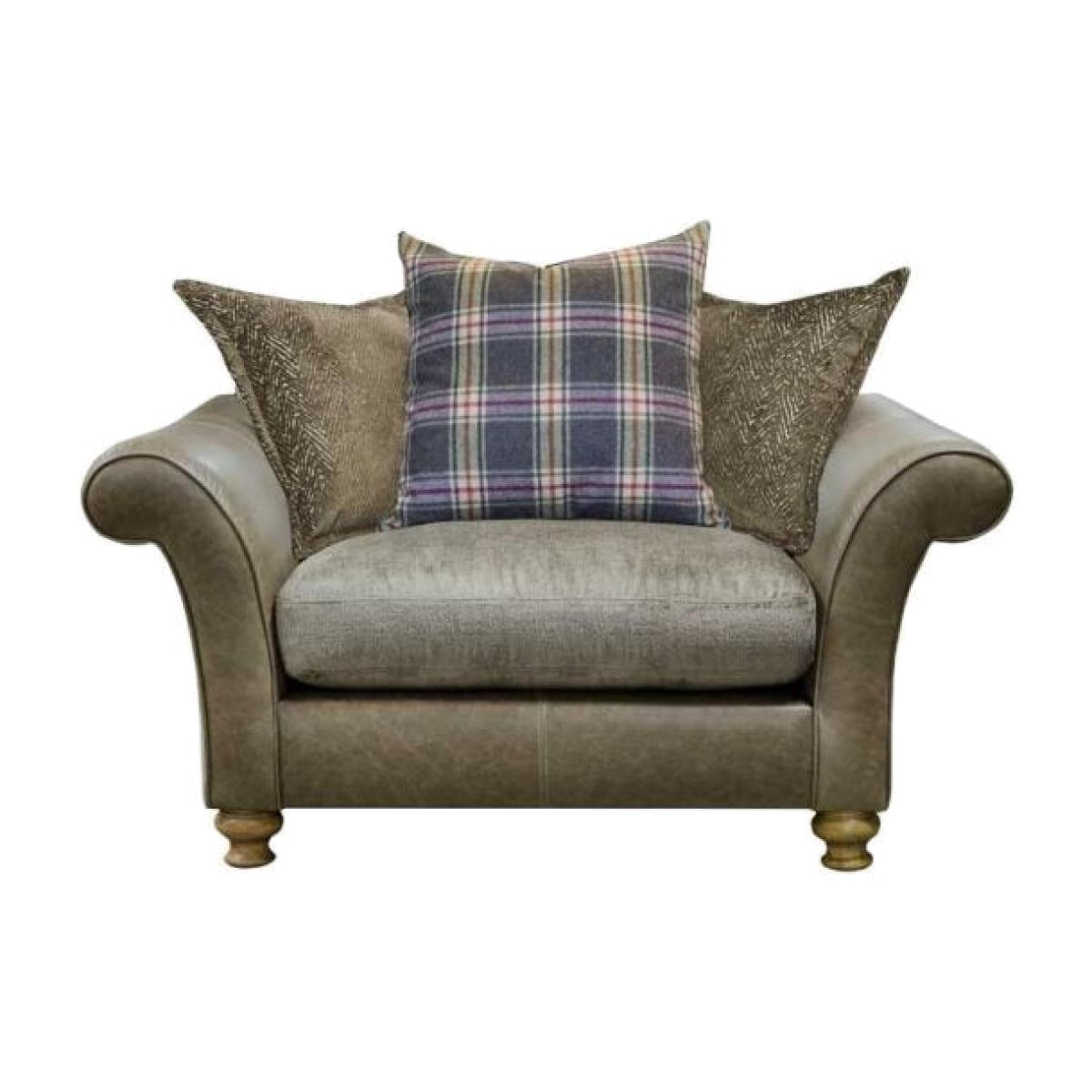 The Blake Pillow Back Snuggler Chair is full of character! Its beautifully styled leather body is complete with cosy woven seats, for a contemporary, country style. It comes available in a variety of leather and fabric combinations. Sofas are hand crafted and made to order from the finest materials, sourced from around the world. Alexander & James leathers are natural, have character and age beautifully. All the wood comes from sustainable forests and our shapely legs are hand turned and polished to perfection. Fillings are super soft, mixing feather, foam and fibre. Tested to the highest British standards, (including A&J very own bottom test!).