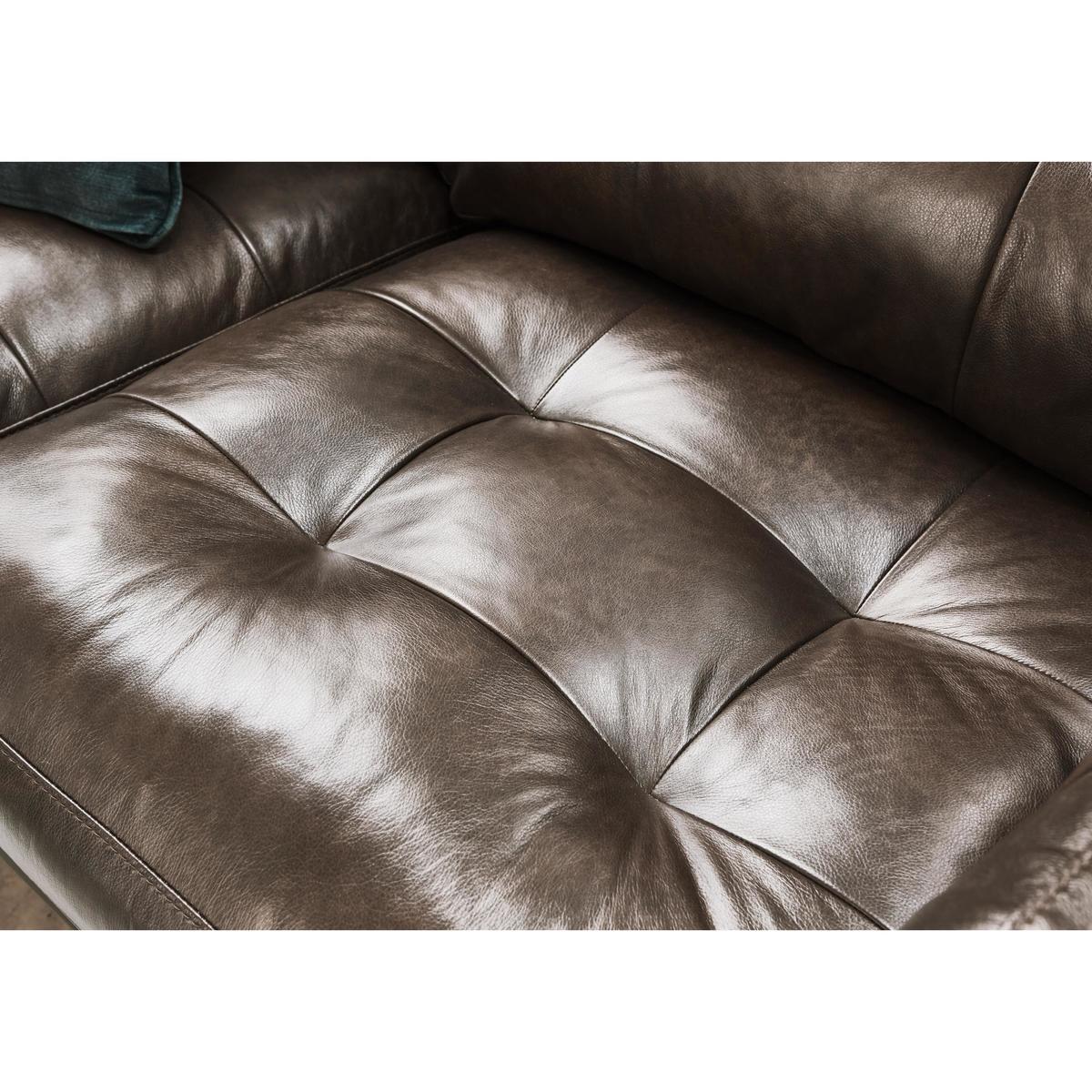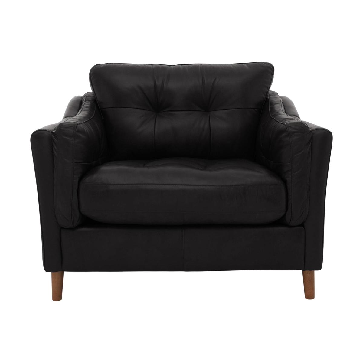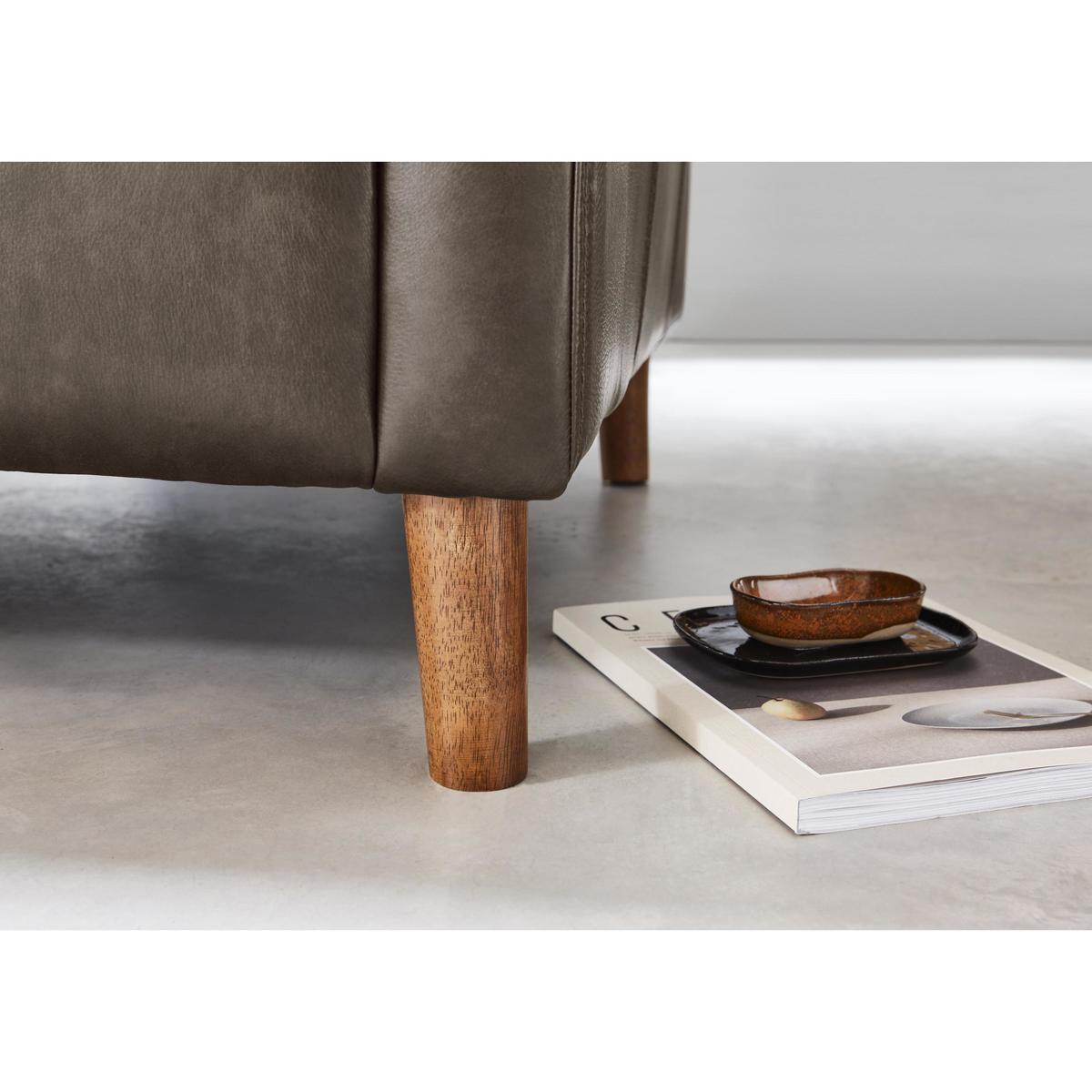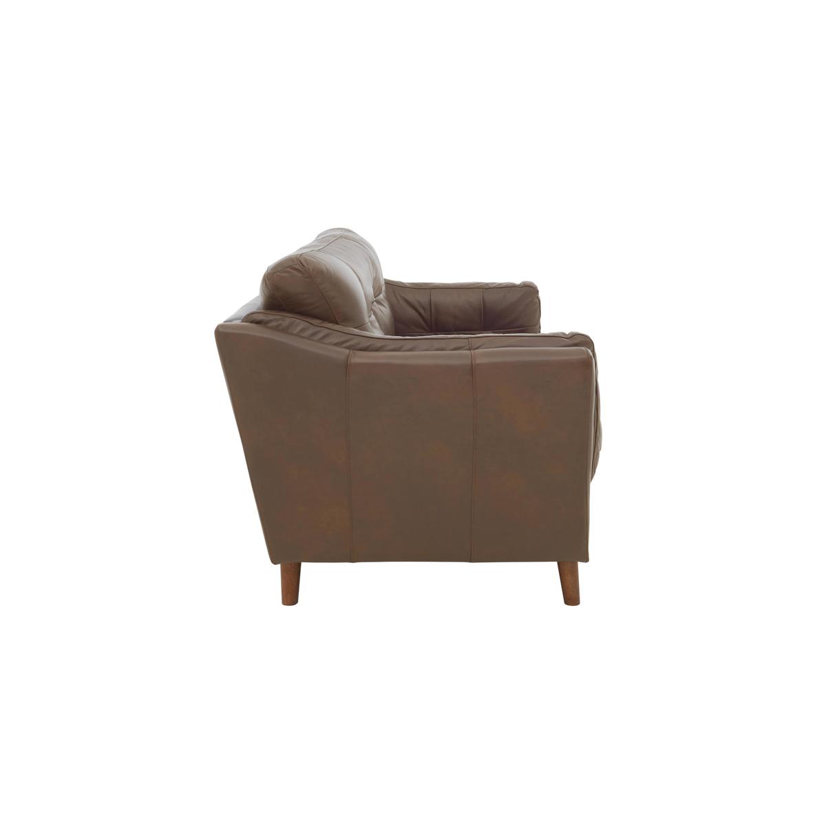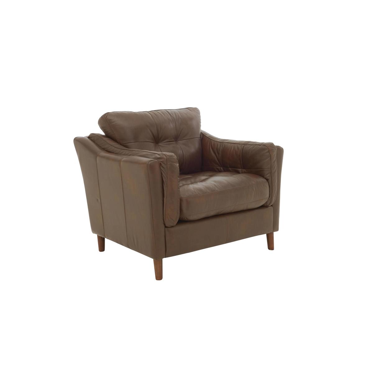 Relaxed and refined industrial design. Handcrafted with luxury comfort built-in. Beautifully upholstered in natural leather. Choose retro designer style with the Loft Living leather armchair, from Alexander and James. This characterful armchair, beautifully upholstered in natural leather in a wide choice of colours, has a relaxed modern charm it’s easy to fall for. Gorgeous features include the slim arms, buttoned and quilted seat and back cushions and fashionably splayed wooden legs. Feel the support of solid hard wood rails and firm front sprung seats. Then sit back and appreciate the foam with fibre wrap and feather seat cushions and soft, fibre filled back cushions – you may wish to stay all day. Add to the unashamed luxury with plush, velvety, feather filled scatters, available to buy separately. For more leather colours, fabric upholstery options and further leg finish options including weathered oak, please call 0800 804 8879. The retro inspired Loft leather armchair is part of the beautifully handcrafted Camden Collection by Alexander & James. Did you know? Natural leather has unique marks and characteristics with variance in colour and texture, and softens with use. Smoothing the cushioned top prevents ‘puddling’.