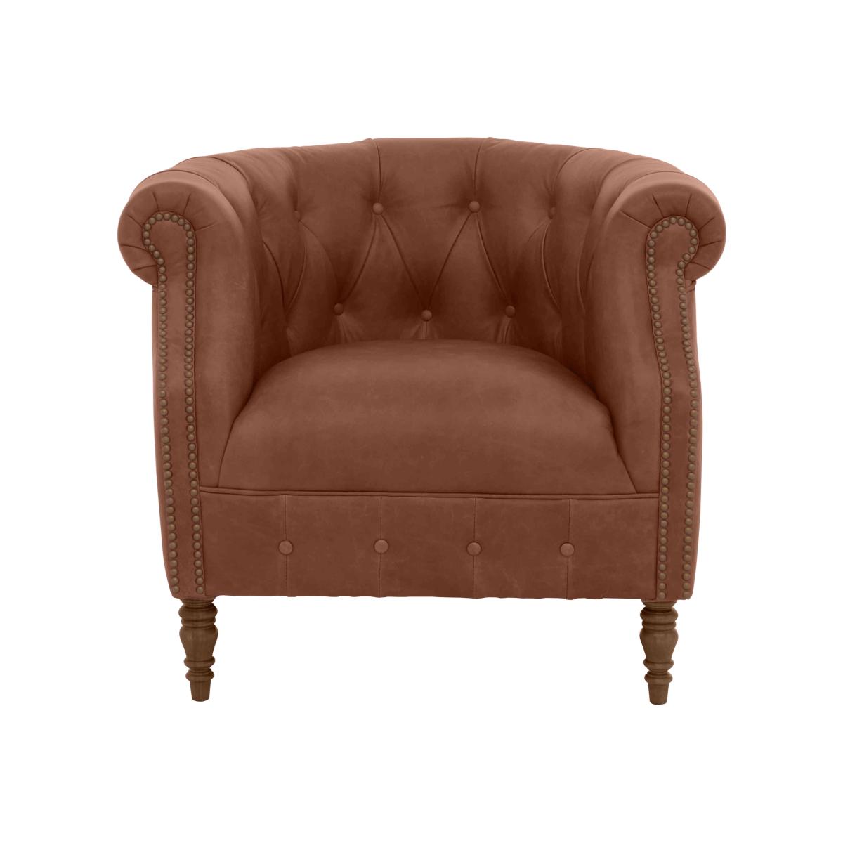 Alexander and James - Chesterfield Collection Calvin Leather Chair - Satchel Pepper with Studs - Dark Feet