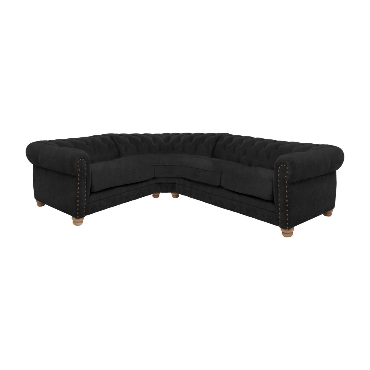 Alexander and James - Chesterfield Collection Hugo Small Fabric Left Hand Facing Corner Sofa - Chocolate with Studs - Oak Feet