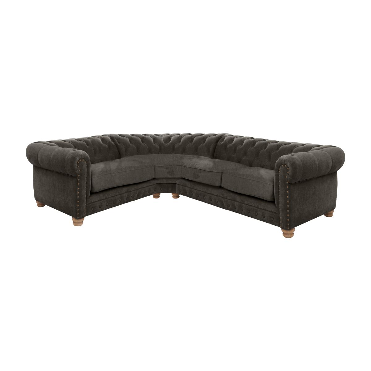 Alexander and James - Chesterfield Collection Hugo Small Fabric Left Hand Facing Corner Sofa - Linen Grey with Studs - Oak Feet