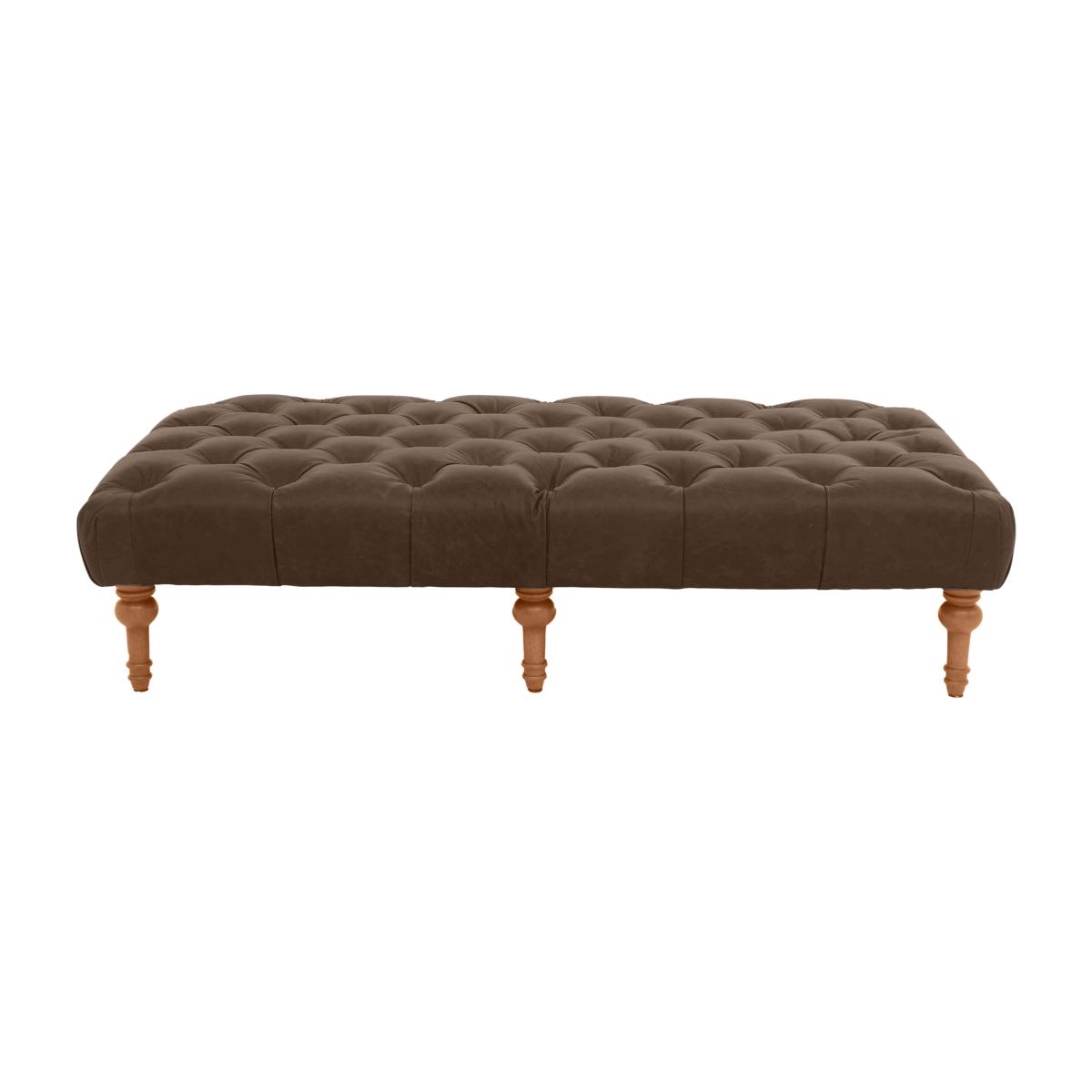 Alexander and James - Chesterfield Collection Large Leather Footstool - Satchel Biscotti - Oak Feet
