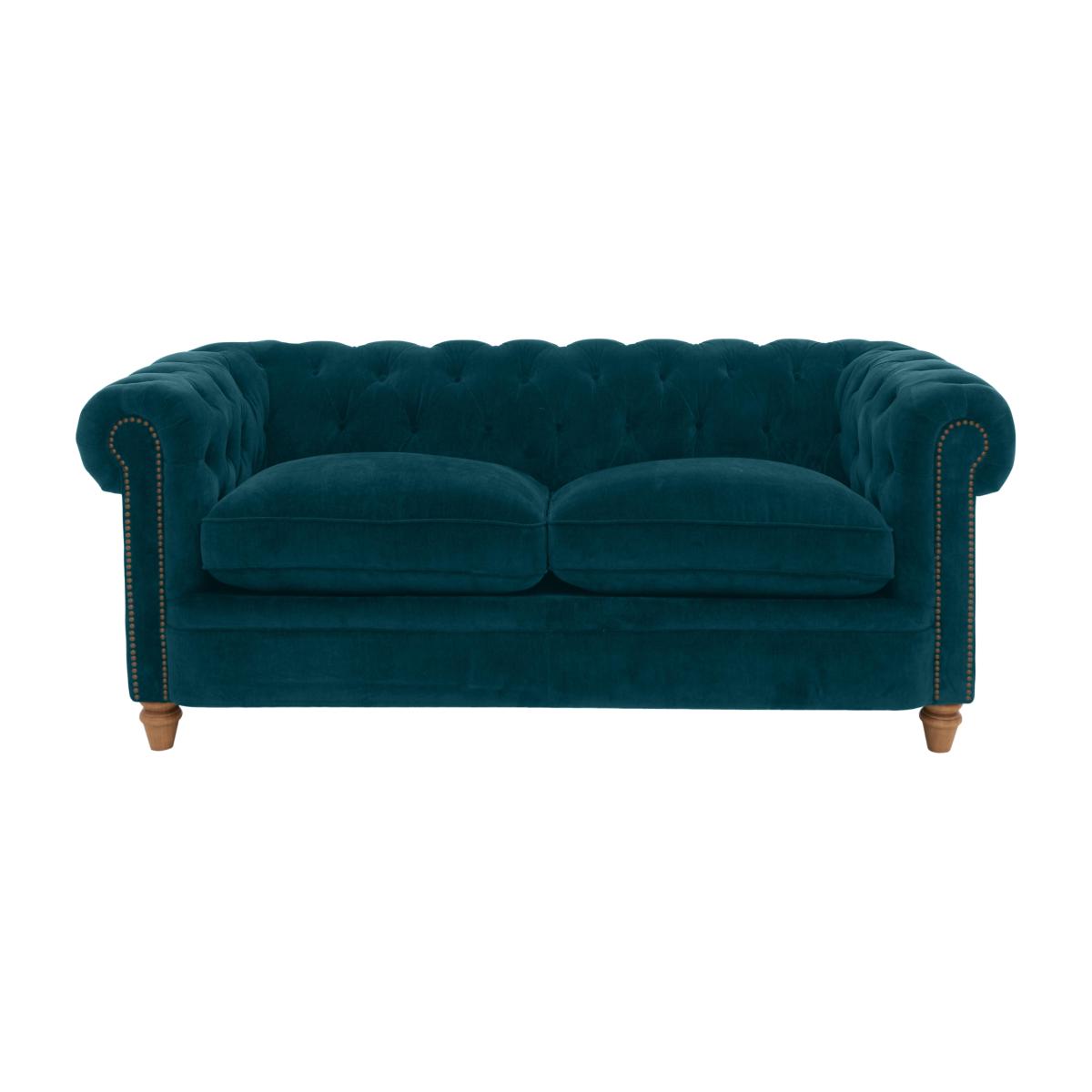 Alexander and James - Chesterfield Collection Ralph 2 Seater Fabric Sofa - Chamonix Teal - Oak Feet with Studs