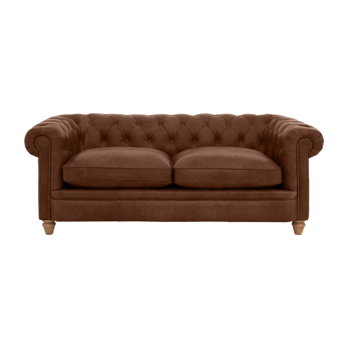 Alexander and James - Chesterfield Collection Ralph 3 Seater Leather Sofa - Satchel Pepper with Studs - Oak Feet