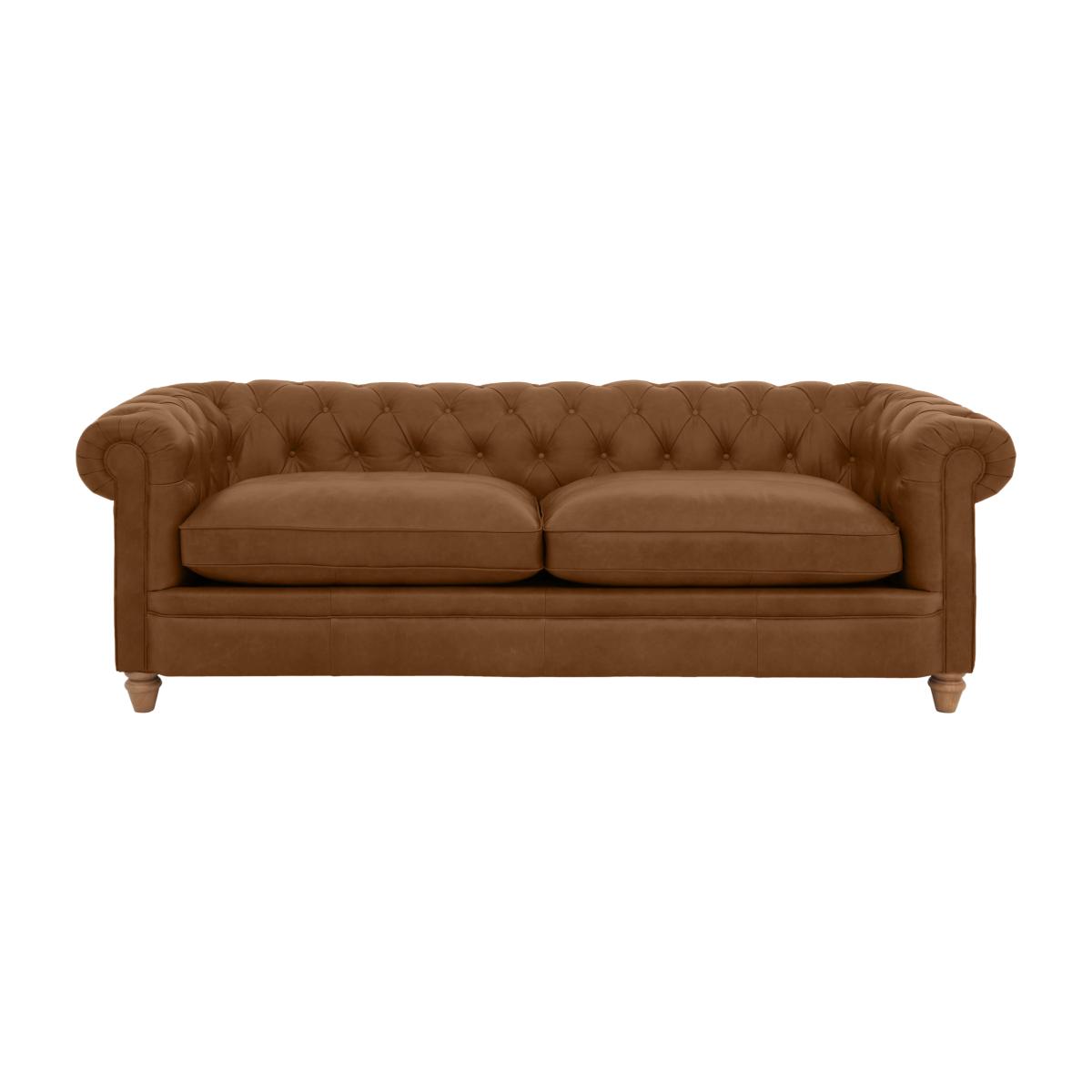 Alexander and James - Chesterfield Collection Ralph 4 Seater Leather Sofa - Satchel Latte - Oak Feet