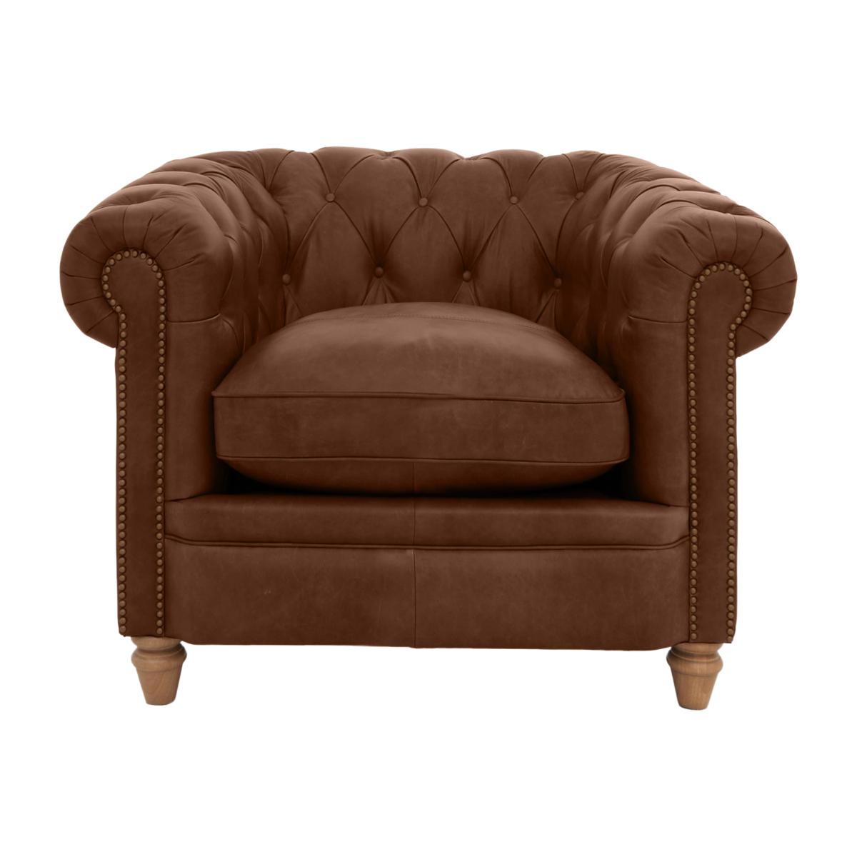 Alexander and James - Chesterfield Collection Ralph Leather Chair - Satchel Pepper with Studs - Oak Feet
