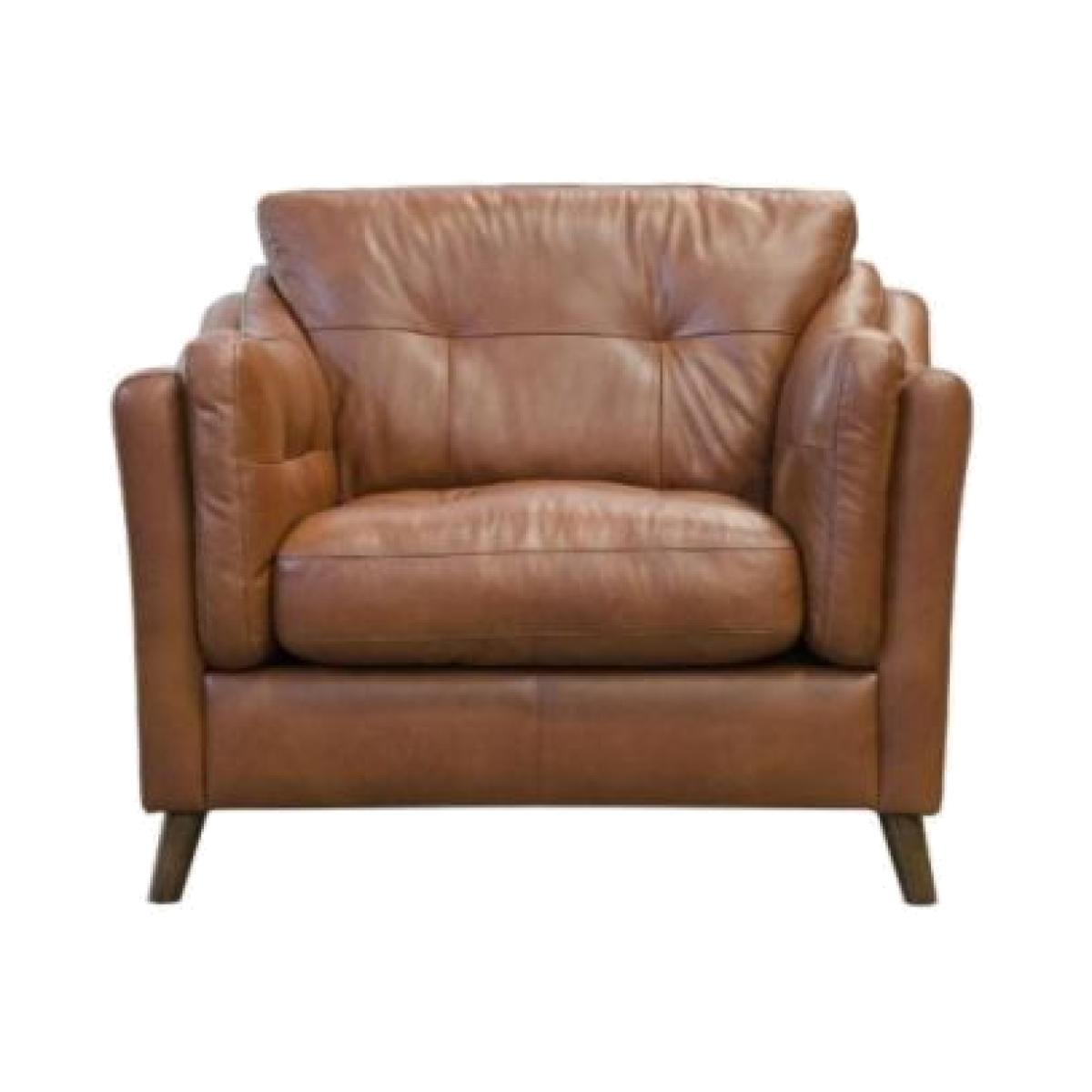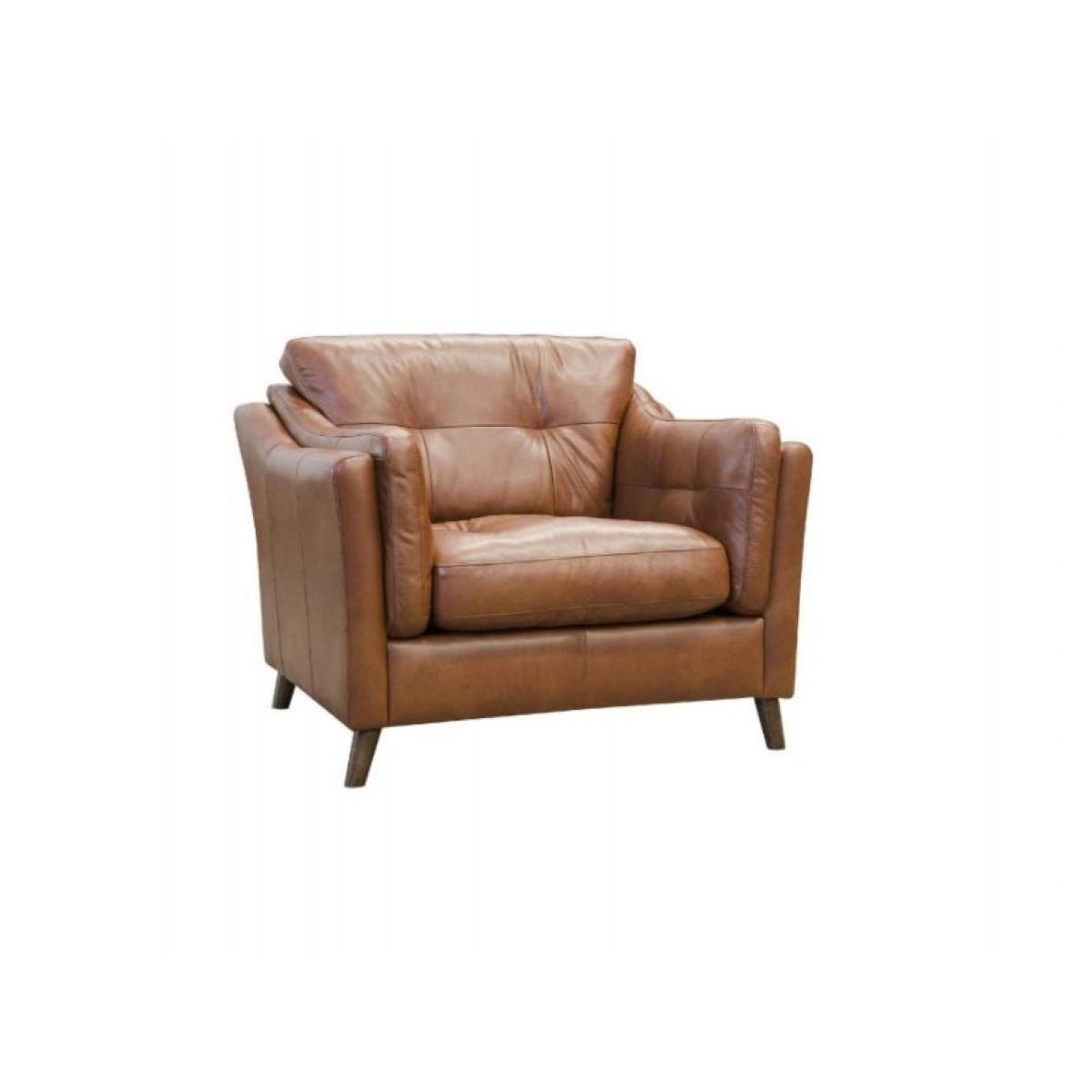 The Alexander & James Saddler Chair mixes classic and contemporary style for a unique look that looks great in your choice of fabric or leather. The relaxed, slouchy design of the seat cushion is contrasted by the super slim frame and arm cushions. The Saddler range is idea for smaller living spaces because of its slim frame which keeps the sofa as compact as possible. With your choice of fabric or leather covering, you can style the Alexander & James Saddler collection to suit any interior. Beautifully soft and slouchy designed classic with squidgy arm pads and pin tuck detailing for added bounce. The slim frame is padded out by the luxurious feather, foam and fibre filled cushions for a sumptuous sit. Choose between Weathered, Dark or Black coloured wood for the feet for your own unique design. Approximate Dimensions - H 85 x D 98 x W 109cm Seat Fillings - Mixed Feather, Foam and Fibre Pin Tuck Detailing Wood Sourced from Sustainable Forests 10 Year Frame Guarantee *Please note, all screens vary in colour reproduction and whilst every effort has been made to display the colour as accurately as possible it is for guidance only.