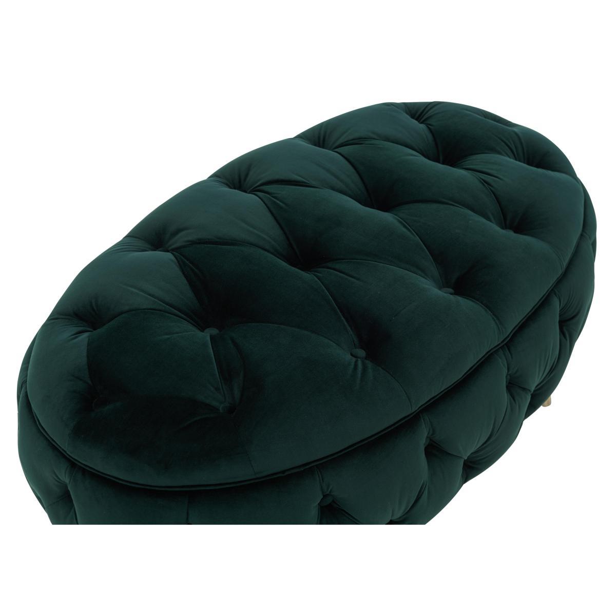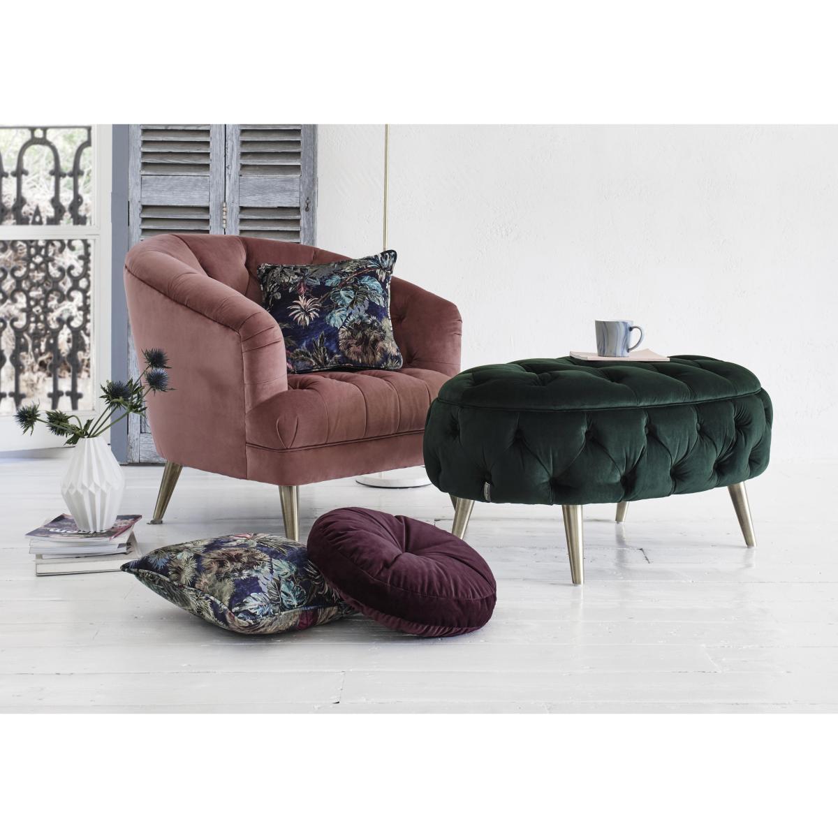 Indulge in pure, decadent luxury with the exquisite Soho collection. Handcrafted in Britain by renowned furniture makers Alexander & James, the Soho collection comes in a striking selection of rich, jewel tones for dramatic centerpiece style. Graceful, sweeping curves and hand tufted deep buttoning create inviting, deeply cushioned sofas and chairs, while foam with fibre wrap seat cushions resting on a sprung bases offer unrivalled, sumptuous comfort. Elevated on striking, slanted gold legs, this luxurious collection seamlessly blends vintage design with mid-century style to stunning effect. Also available with weathered oak or dark wood legs for a more Scandi feel. A Furniture Village online exclusive. Luxurious deep-buttoned design. Soft, plush velvet upholstery. Vintage design with a mid-century feel. The ultimate luxury addition to your seating area, the Soho Oval Fabric Footstool lets you put your feet up in total comfort while you relax in one of the indulgently comfortable sofas or armchairs from the collection. Beautifully upholstered in a plush velvet that feels exceptionally soft to rest against, it features sumptuous, hand tufted deep buttoning and neat pleating that complement its elegant curves. Elevated on striking, slanted gold legs, this footstool is a seamless blend of vintage and mid-century design, promising to make a dramatic statement in any home. Designed by British furniture makers, Alexander & James, every detail has been lovingly finished by hand. If you’d prefer a different look for your footstool, we offer weathered oak and dark wood legs and a gorgeous range of jewel-toned colours. A Furniture Village online exclusive. The Soho Oval Fabric Footstool is part of the luxuriously decadent Soho range. Top tip. Some fabrics can show wear on areas of more use or in direct sunlight. To keep your fabric upholstery looking fresh, plump, turn and rotate seat and back cushions regularly if possible.