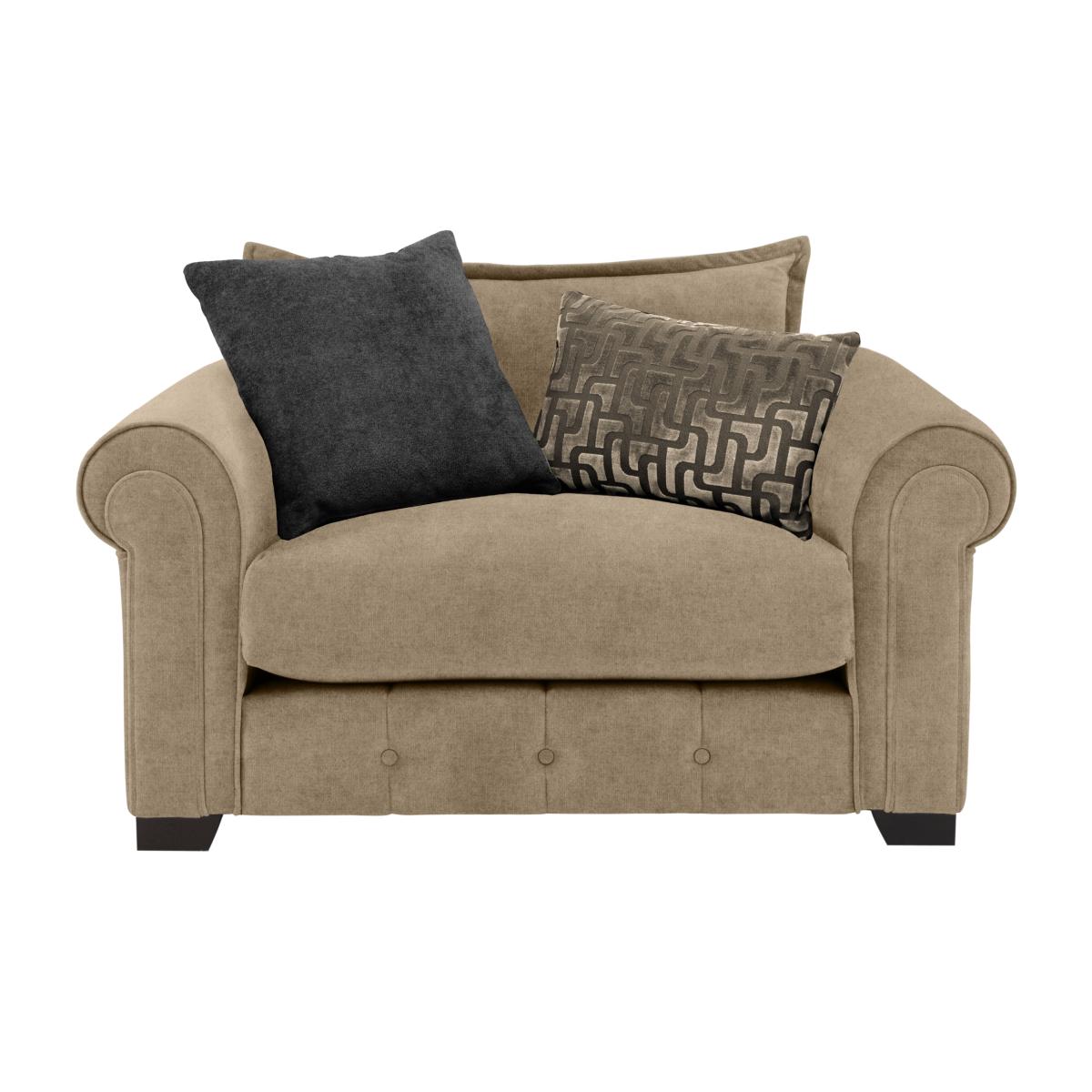Take your shoes off, and snuggle up. The Alexander and James Sumptuous sofas and chairs feel like heaven, indulging you from head to toe with ultra-deep encore foam seats, sumptuous cushions and luxurious scatters and bolsters. The super soft touch velvet upholstery is sourced from the finest Italian mills. Hand applied piping and studding adds sparkle and style, while the front borders are finished with hand-quilted panels. Handcrafted exclusively for Furniture Village, the Sumptuous range is modular so you can create your own bespoke sofa. Classic glamour and indulgent comfort, on a grand scale. You can share this beautiful snuggler chair but you may want to keep the deep-seated, velvety loveliness all to yourself. Scatter and bolster included. Why you’ll love it It’s so luxuriously roomy it’s almost like a small sofa. Classic glamour with deep-seated comfort. Super-soft Italian velvet upholstery, in warm, sophisticated colours. Ultra-deep encore foam sprung seat. No-turn seat cushion with no plumping required. Soft, supportive pillow-style back cushion. One large velvet scatter and one reversible Deco-inspired bolster included. Beautiful. hand-applied chrome piping and studding. You can also choose gold piping, or piping in the sofa’s body fabric. Handcrafted exclusively for Furniture Village. What you need to know: Upholstery is soft touch, stonewashed, woven velvet. Pillow back cushions are fibre filled, arm cushions feather filled. One-sided seat cushion is high density encore foam. Bolster has velvet body fabric on one side, geometric pattern on the reverse. Handcrafted frame with solid hardwood rails. Light or dark wood feet. Feet and arms are removable. Some fabrics can show wear on areas of more use or in direct sunlight. Rotate seat and back cushions regularly if possible. Please read our upholstery care guide for more advice.