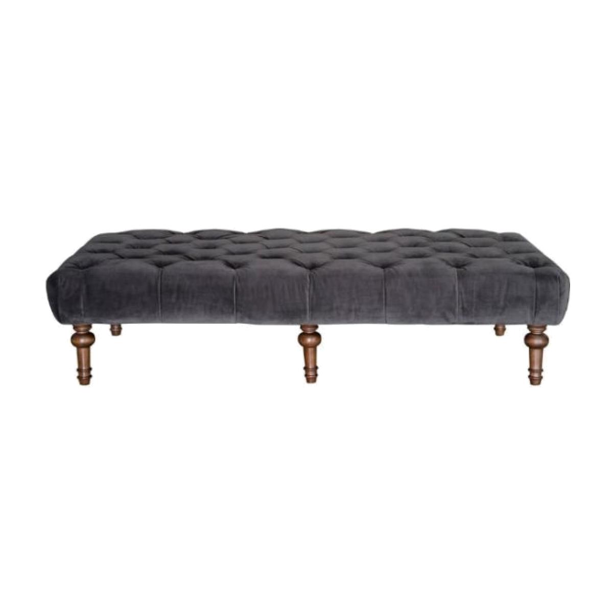 Relax and put your feet up in complete style with the Alexander & James Victoria Footstool in a fabric finish, which adds a homely finishing touch to either a modern or retro décor. Shown In:  Plush Asphalt Dimensions: W 160 x D 90 x H 38cm Wood sourced from sustainable forests Hand crafted and made to order Available in a huge range of natural leathers and fabrics 10 Year Frame Guarantee All screens vary in colour reproduction and whilst every effort has been made to display the colour as accurately as possible it is for guidance only.