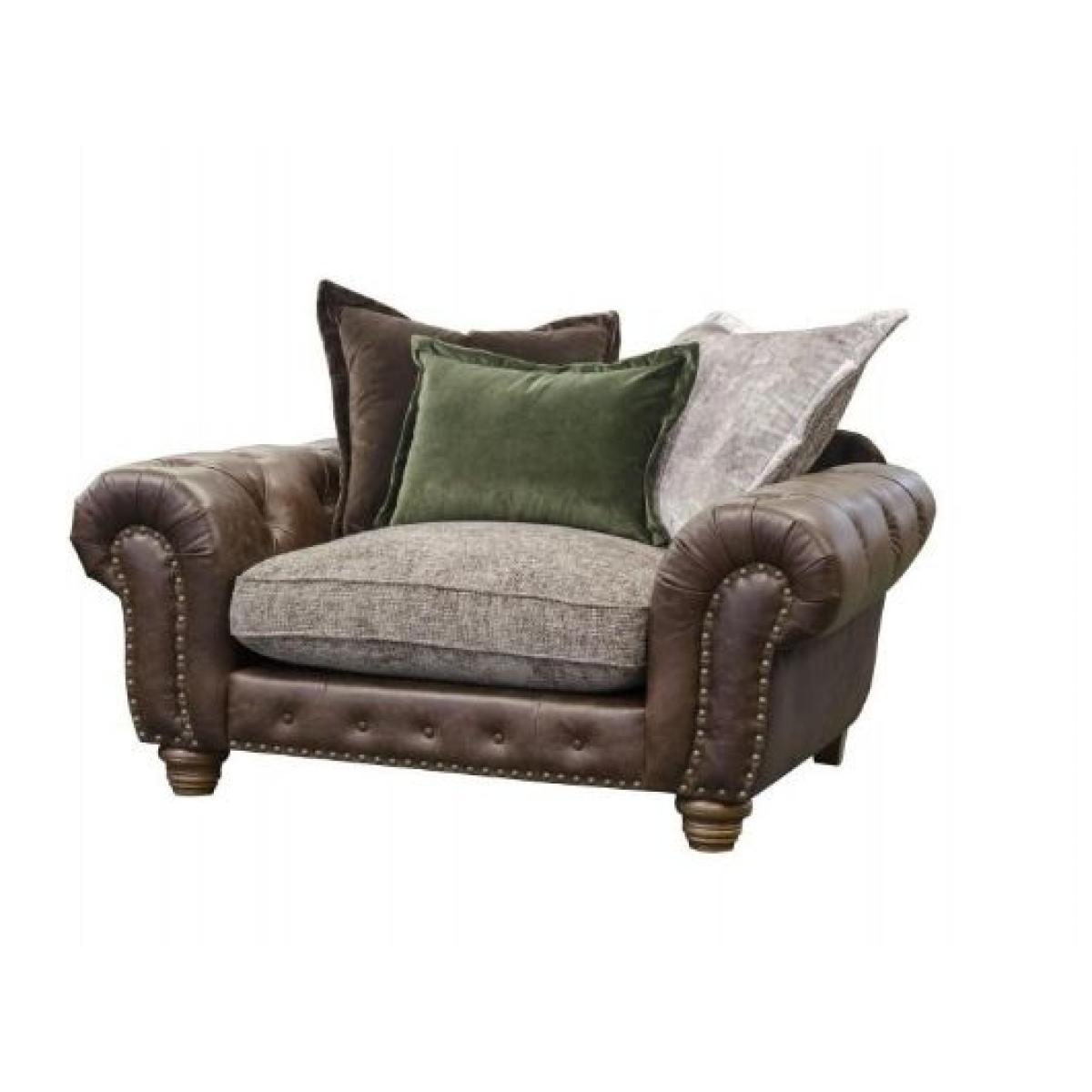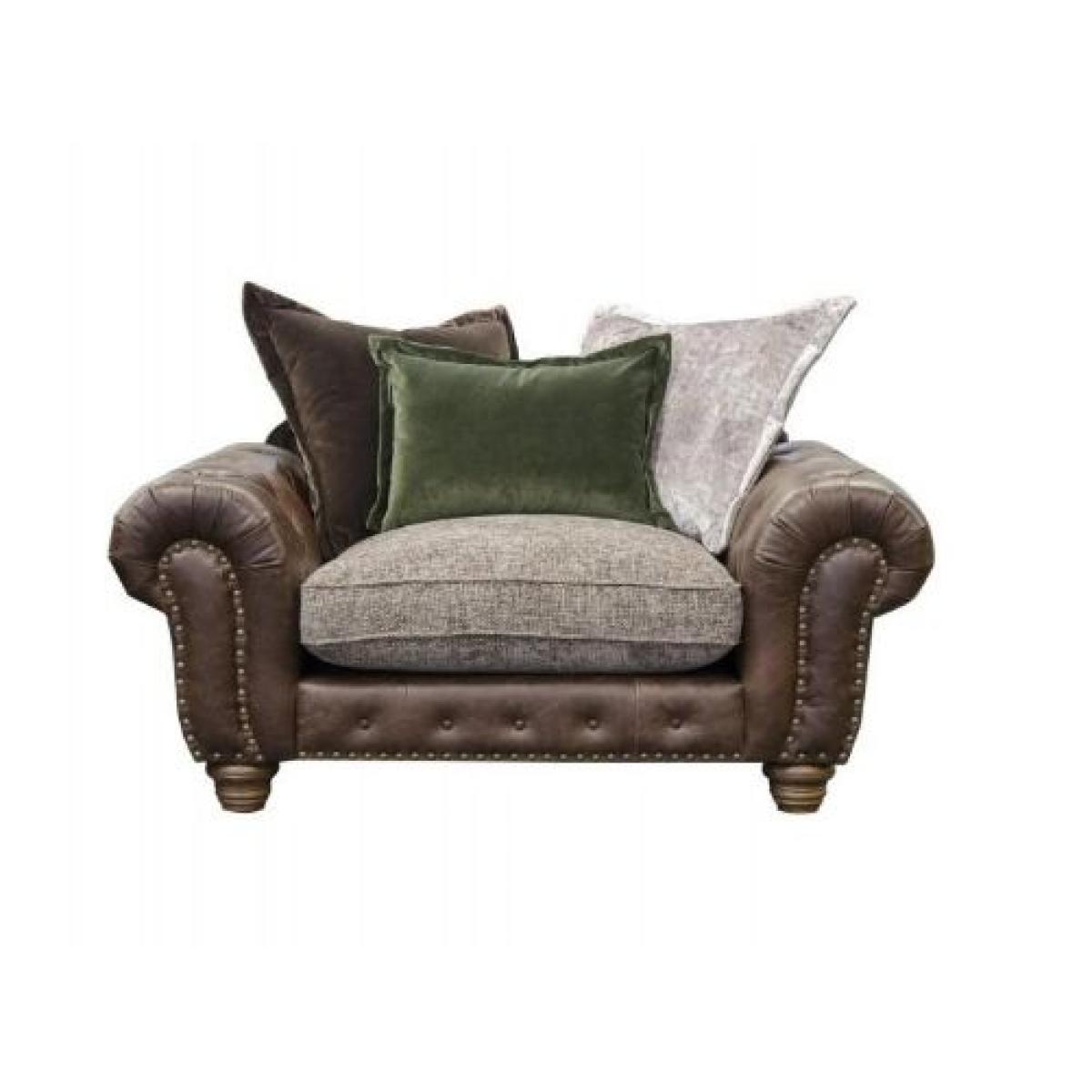 The Wilson pillow back Snuggler is full of character! Designed for snuggling up in the cosiest velvet's help create this romantic roll armed collection. Its easy to custom make your Wilson Snuggler chair:Choose one of the Satchel Leather options available for the frame of the sofa Select neutral Alpine Stone or warm Alpine Sand for the seat cushion over Choose the accent fabric for the Bolster Cushions Go for either Antique, Pewter, Chrome or Gold for the framed studded option Complete the look by choosing Dark Wood, Weathered Oak or Black hand-turned feet Sofas are hand crafted and made to order from the finest materials, sourced from around the world. Alexander & James leathers are natural, have character and age beautifully. All the wood comes from sustainable forests and our shapely legs are hand turned and polished to perfection. Fillings are super soft, mixing feather, foam and fibre. Tested to the highest British standards, (including A&J very own bottom test!) Shown in Satchel Nutmeg leather, Alpine Stone Seat Cushion, Antique Studs, Weathered Oak feet Approximate dimensions - H 91cm x D 110cm x W 150cm Wood sourced from sustainable forests Handmade to order Feather, foam and fibre seat cushions 10 Year Frame Guarantee All screens vary in colour reproduction and whilst every effort has been made to display the colour as accurately as possible it is for guidance only.