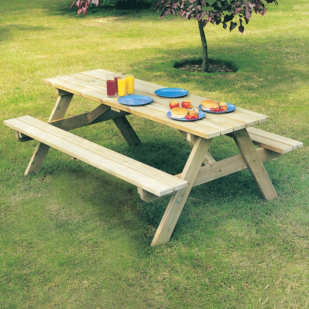 The Alexander Rose Pine Woburn Picnic Table provides an easy going environment to catch up and entertain your nearest & dearest. From casual lunches to BBQs with close friends and family it will encourage everyone to get outside and enjoy one of life's simple pleasures! The pine has an impressive natural grain and with its chunky strong structure, you and your guests are in for a treat! Whether your looking for a picnic bench for your patio area, or to be placed onto your grassy areas the overall rustic feel will look the part in any location you decide to place it! With space for a parasol, why not add a little shade whilst you dine away!.