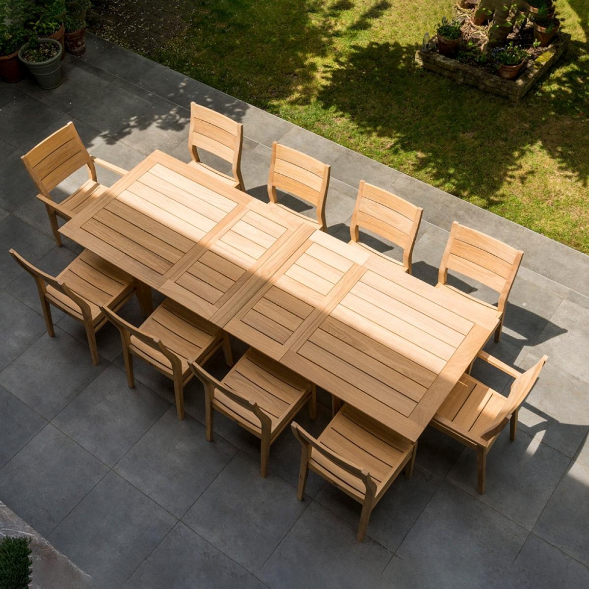 Fire up the BBQ and gather round the Alexander Rose Roble Extendable Dining Table! Extending out to 288cm in length; there's plenty of space around the rectangular garden table for 10 guests to sit, dine and enjoy themselves! With matching garden dining chairs available separately, don't forget to add some seating! When you've finished refueling and relaxing, tuck the extra table section away to save on space out on the patio, decking or garden. All made from FSC hardwood with a 10 year manufacturers guarantee; the outdoor table's natural wood grain will fade to a gorgeous silver grey tone over time, or treat to preserve the original colour, the choice is yours!.