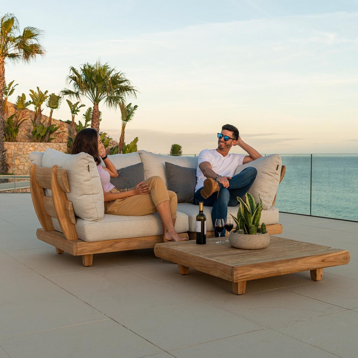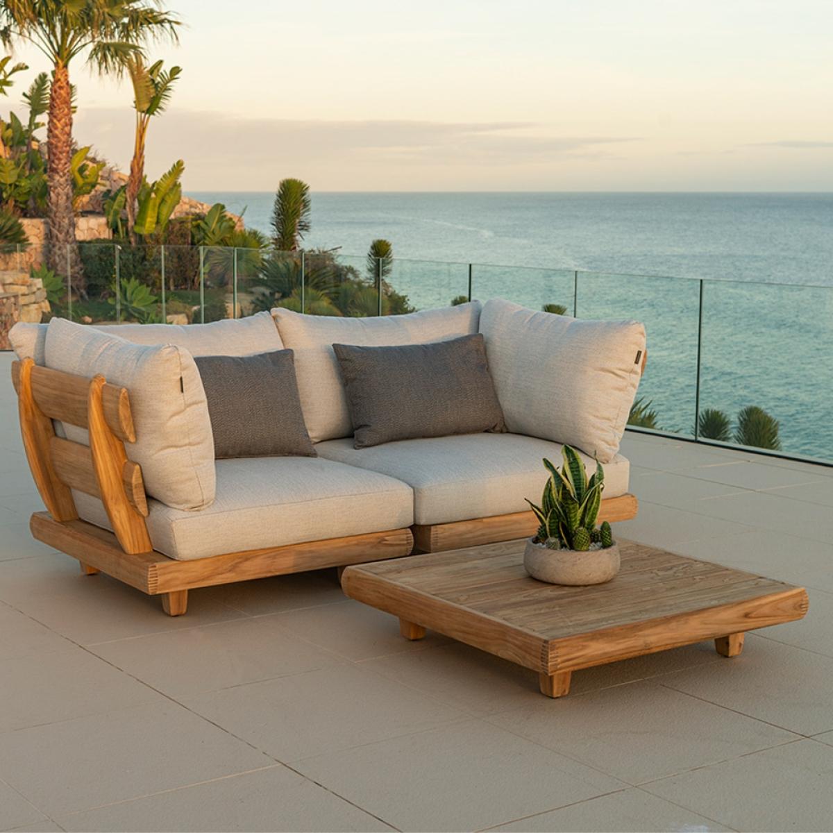 Your tan may fade but the memories created around this Alexander Rose Sorrento 2 Seat Sofa Set will last forever! The beautifully crafted chunky rounded Teak wood frame paired with the deep filled luxurious cushions will lead you into a comforting daze. Enjoy this sofa all by yourself or if you're feeling generous share with a loved one for a well deserved de-stress. With a matching coffee table available separately, it will be the perfect spot for appetizers and chilled beverages for a relaxed enjoyable day that just slowly slips into evening. What more could you want?.