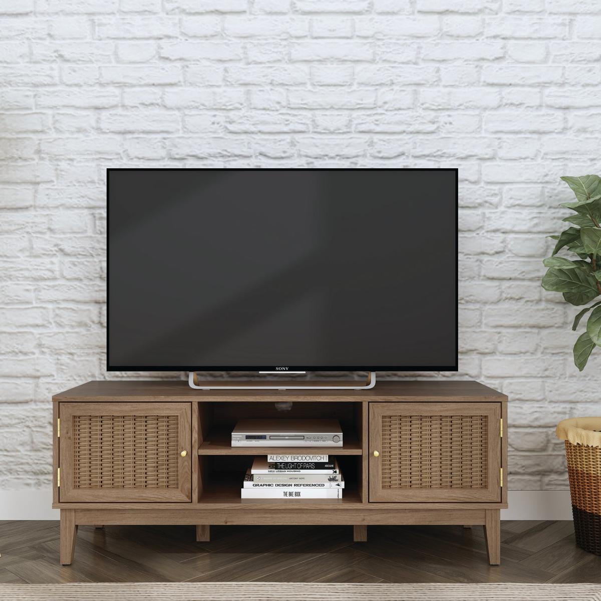 Treat yourself to the Alexander TV unit, with two cupboards and two shelves there's always a place for your media consoles and more. It's alluring rattan fronts, gold effect handles and fittings and modern boho vibe all add up to give you a fashionable focal point in your living room.