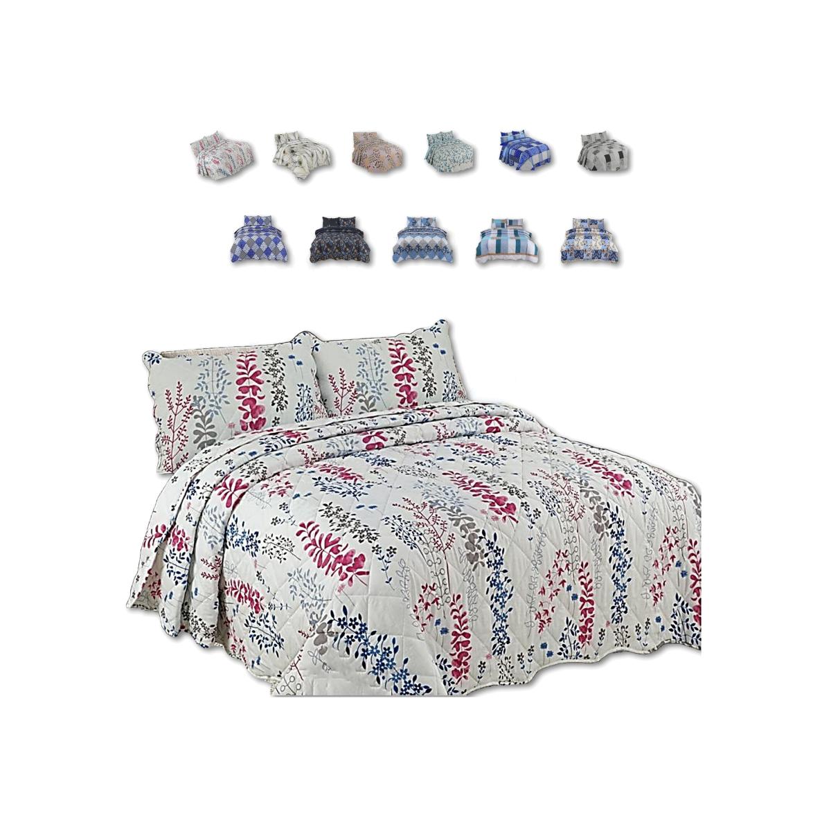 This bed spread is made from a hybrid of natural cotton and polyester, called Poly. Cotton. It features 11 unique designs and colors, making it durable and cost-effective. The quilted fillings are Virgin Polyester, and the set is breathable, breathable, and lightweight. The set is designed for every bed and comes in a versatile free tote bag. Care instructions include machine washing at 30 degrees centigrade, tumble drying on low heat, and folding while damp. The set is shrink-resistance and can be used with both Double and King sizes. The package includes a bed spread and matching pillow cases. The product is made with top quality polycotton fabric, complying with UK standards, and offers excellent customer service.