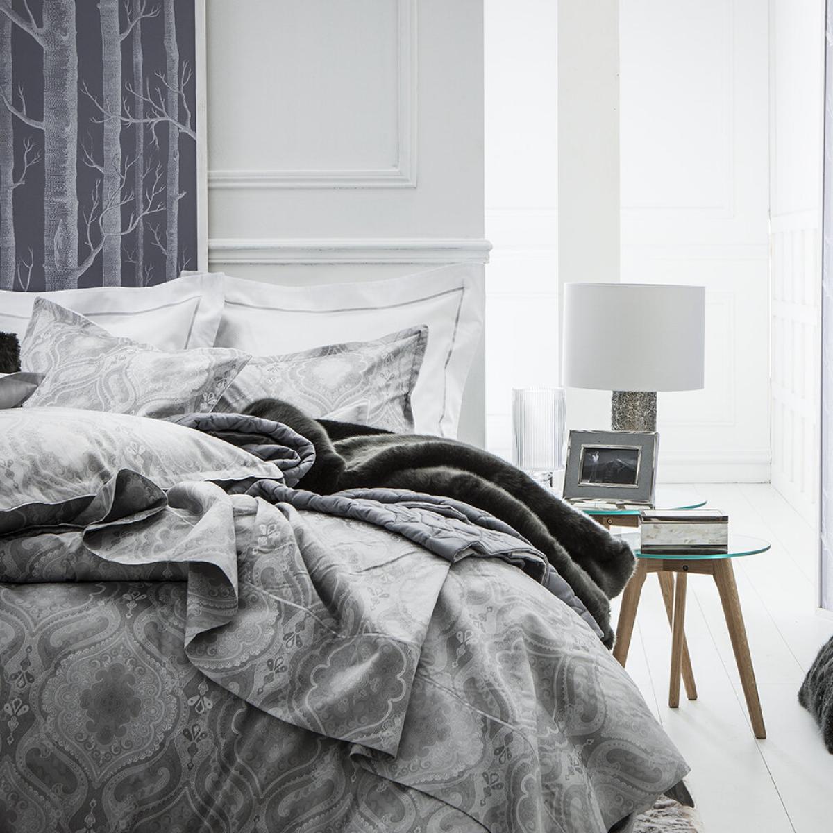 Live a little more luxuriously with this Namaste duvet cover from Alexandre Turpault. In soft grey and white, this duvet cover has an ornate fretwork design inspired by traditional Indian patterns. Made from silky soft 100% cotton sateen, it’s been crafted in Italy.