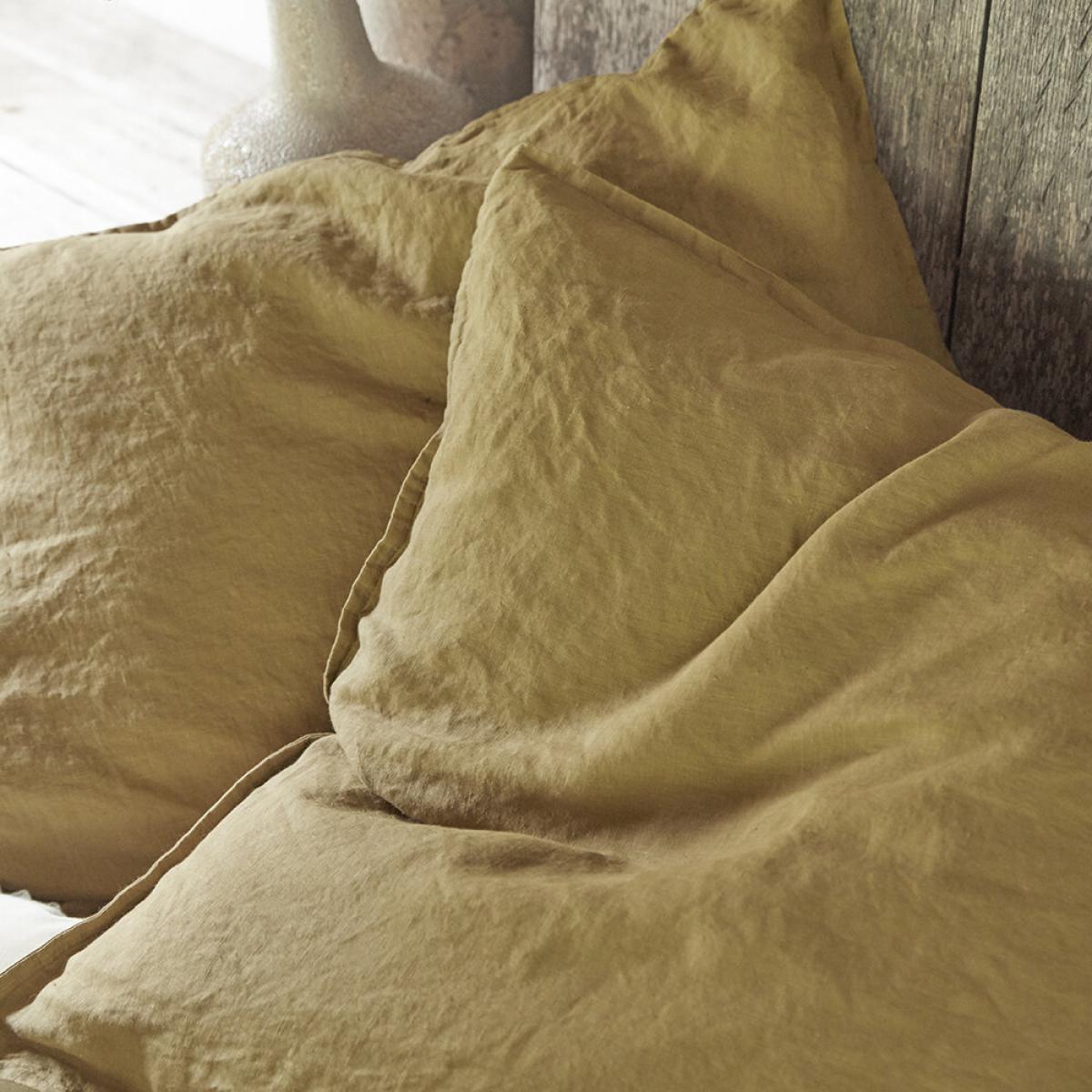 Alexandre Turpault - Nouvelle Vague 100% Washed Linen Plain Oxford Pillowcase - Yellow Sienna - 50x75cm