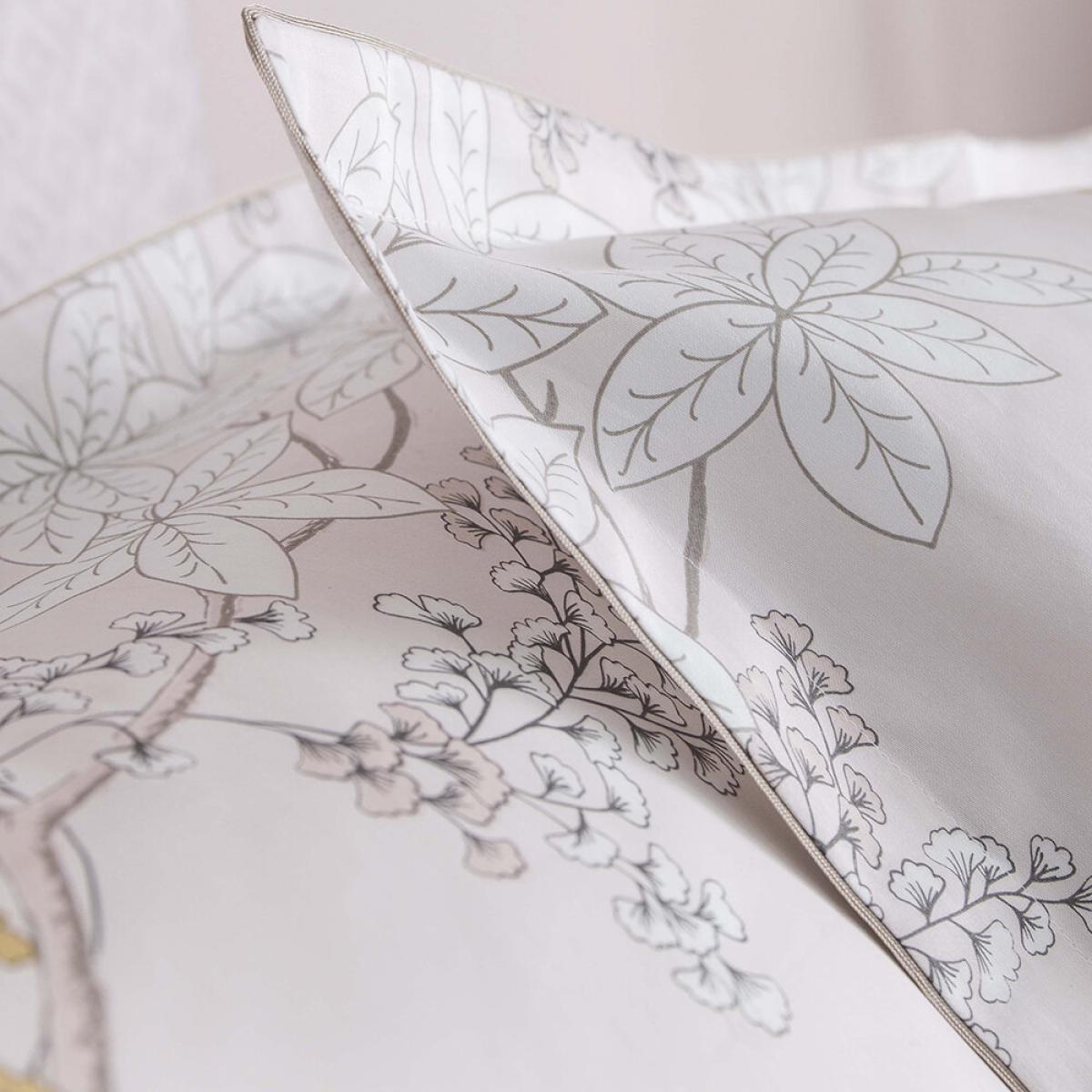 Add a little French flair to you sleeping space with this Quintessence duvet cover from Alexandre Turpault. On a pale blush pink background, this duvet cover has a delicate tree of life design in soft yellow and neutral. Made in Italy from 100% cotton sateen, it’s fabulously silky with a high 300 thread count.