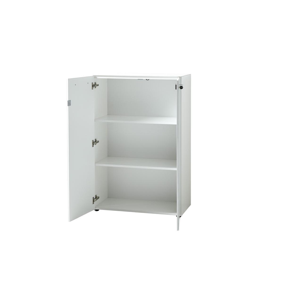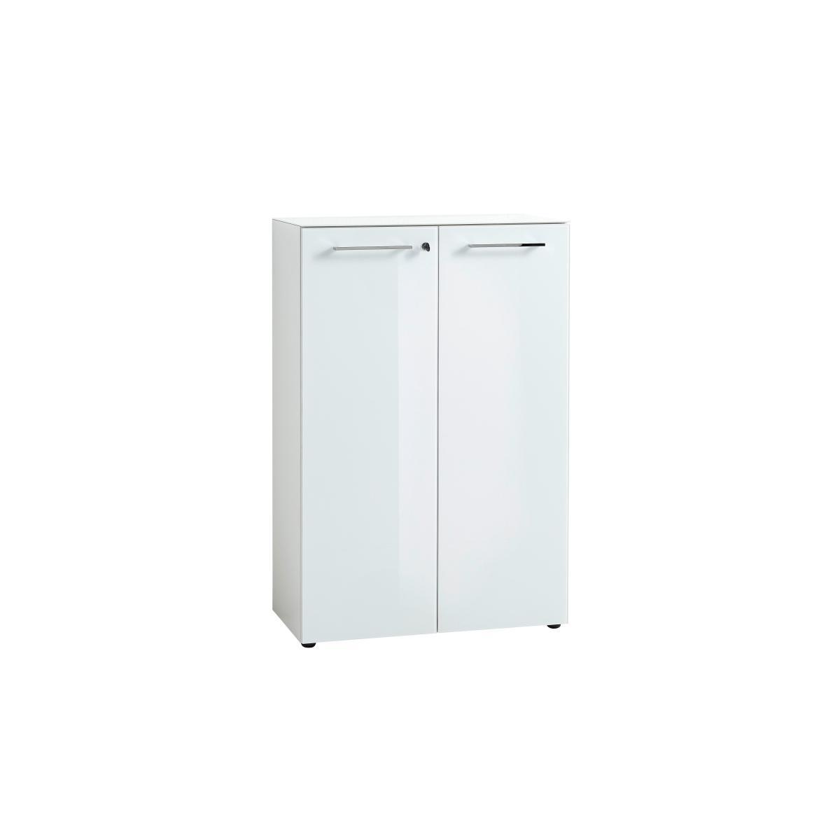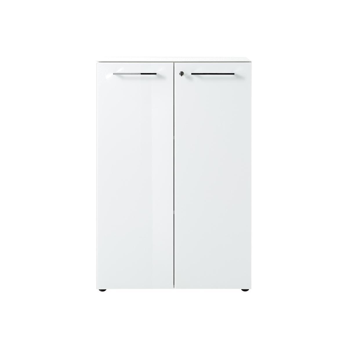 Perfect for your home office, or as a sleek storage unit anywhere. With a white toughened safety glass top and door fronts. In a glossy white or Navarra oak finish. Why you’ll love it. Sleek and simply designed shelved storage filing cabinet. Modern, minimalist style. In a choice of white or a white and Navarra oak finish. White glass top and white glass door fronts. Chrome finish linear handles. Soft-close doors. Filing cabinet is lockable for security. Two adjustable shelves, with plenty of space for files and folders. German designed and precision made, at a great value price. What you need to know. Easy self-assembly required, full instructions included. Construction is particle board with a Melamine resin finish. Haptic wood finish resembles real wood in look and texture. Compact in scale, yet offers plenty of storage. Finished with a strong white or Navarra oak effect melamine finish. The finish safeguards against scratches, stains and heat damage. Protective ‘ABS’ edging adds durability. Top and door fronts are toughened safety glass. Door ‘dampers’ for soft-close doors. Black metal feet. Part of the Alexi coordinated home office range.