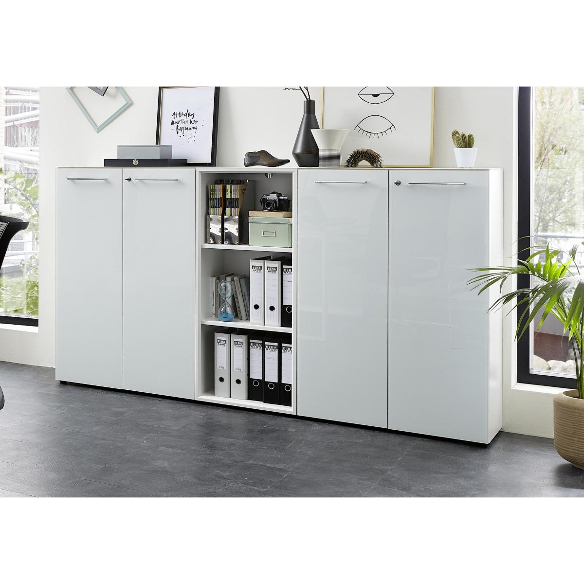 *This is a self-assembly item*. Open filing shelf that suits a home office, but will look good anywhere. In a glossy white or white and warm, Navarra oak finish. German designed and made and great value. Why you’ll love it. Sleek and simply designed filing shelf. Modern, minimalist style. In a choice of white or a white and Navarra oak finish. With a white toughened glass top. Two adjustable shelves, with plenty of space for files and folders. German designed and precision made, at a great value price. What you need to know. Easy self-assembly required, full instructions included. Construction is particle board with a Melamine resin finish. Haptic wood finish resembles real wood in look and texture. Compact in scale, yet offers plenty of storage. Finished with a strong white or Navarra oak effect melamine finish. The finish safeguards against scratches, stains and heat damage. Protective ‘ABS’ edging adds durability. Top is toughened safety glass. Black metal feet. Part of the Alexi coordinated home office range.