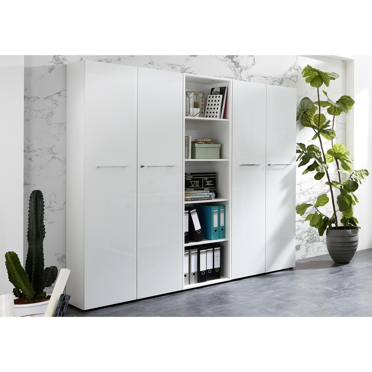 *This is a self-assembly item*. Roomy tall filing cabinet for your home office, or for sleek storage anywhere. With a white toughened safety glass top and door fronts. In a glossy white or oak effect melamine finish. Why you’ll love it. Sleek and simply designed tall shelved storage filing cabinet. Modern, minimalist style. In a choice of white or a white and Navarra oak finish. White glass top and white glass door fronts. Chrome finish linear handles. Soft-close doors. Filing cabinet is lockable for security. Four adjustable shelves, with plenty of space for files and folders. German designed and precision made, at a great value price. What you need to know. Easy self-assembly required, full instructions included. Construction is particle board with a Melamine resin finish. Haptic wood finish resembles real wood in look and texture. Compact in scale, yet offers plenty of storage. Finished with a strong white or Navarra oak effect melamine finish. The finish safeguards against scratches, stains and heat damage. Protective ‘ABS’ edging adds durability. Top and door fronts are toughened safety glass. Door ‘dampers’ for soft-close doors. Black metal feet. Part of the Alexi coordinated home office range.