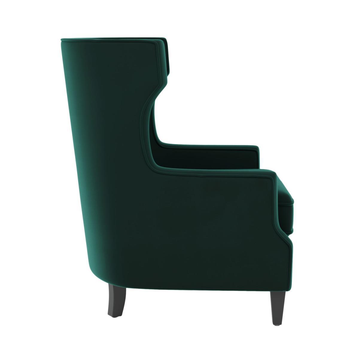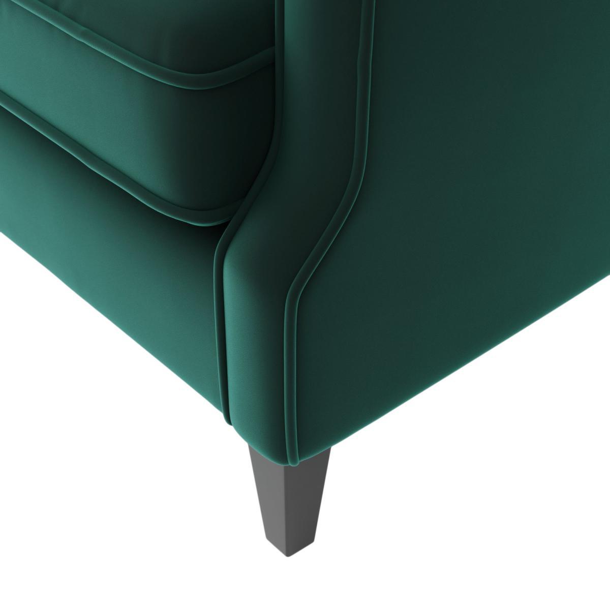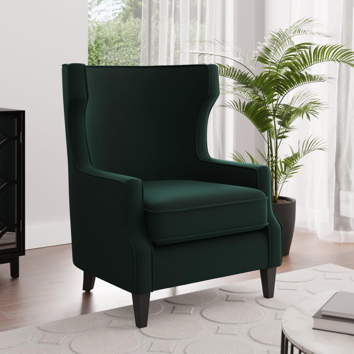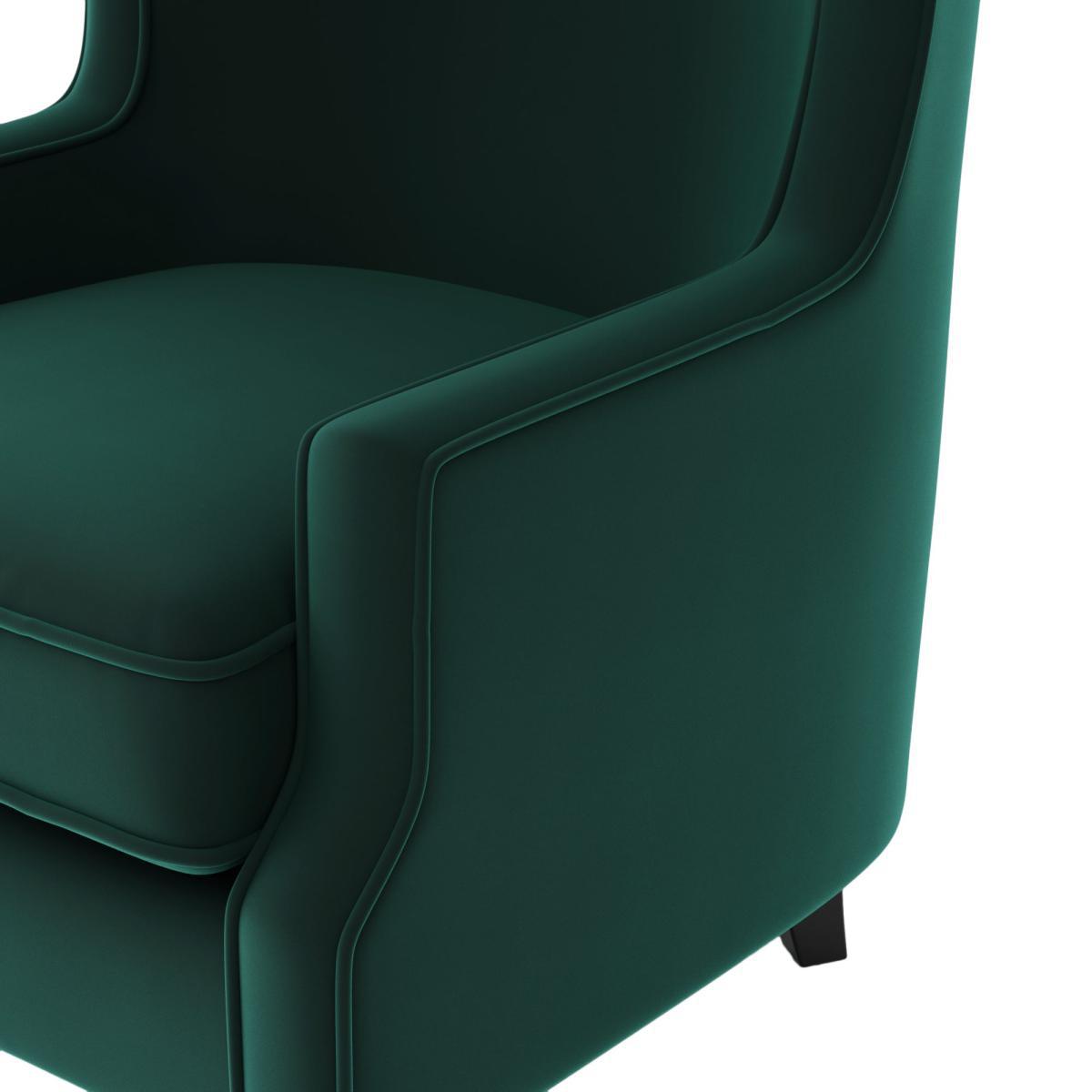 I love this Green velvet armchair for its rich colour and elegant silhouette, which can elevate both modern and traditional interiors. Its plush velvet finish adds a touch of luxury, making it ideal for cosy corners or statement pieces in living rooms or bedrooms. Practical styling tips include pairing with metallic accents or wood furnishings to create contrast, or adding textured cushions for extra comfort. It works well in neutrally styled spaces, where the deep green can act as a focal point, but it can also blend seamlessly into more colourful environments for a refined yet inviting look.