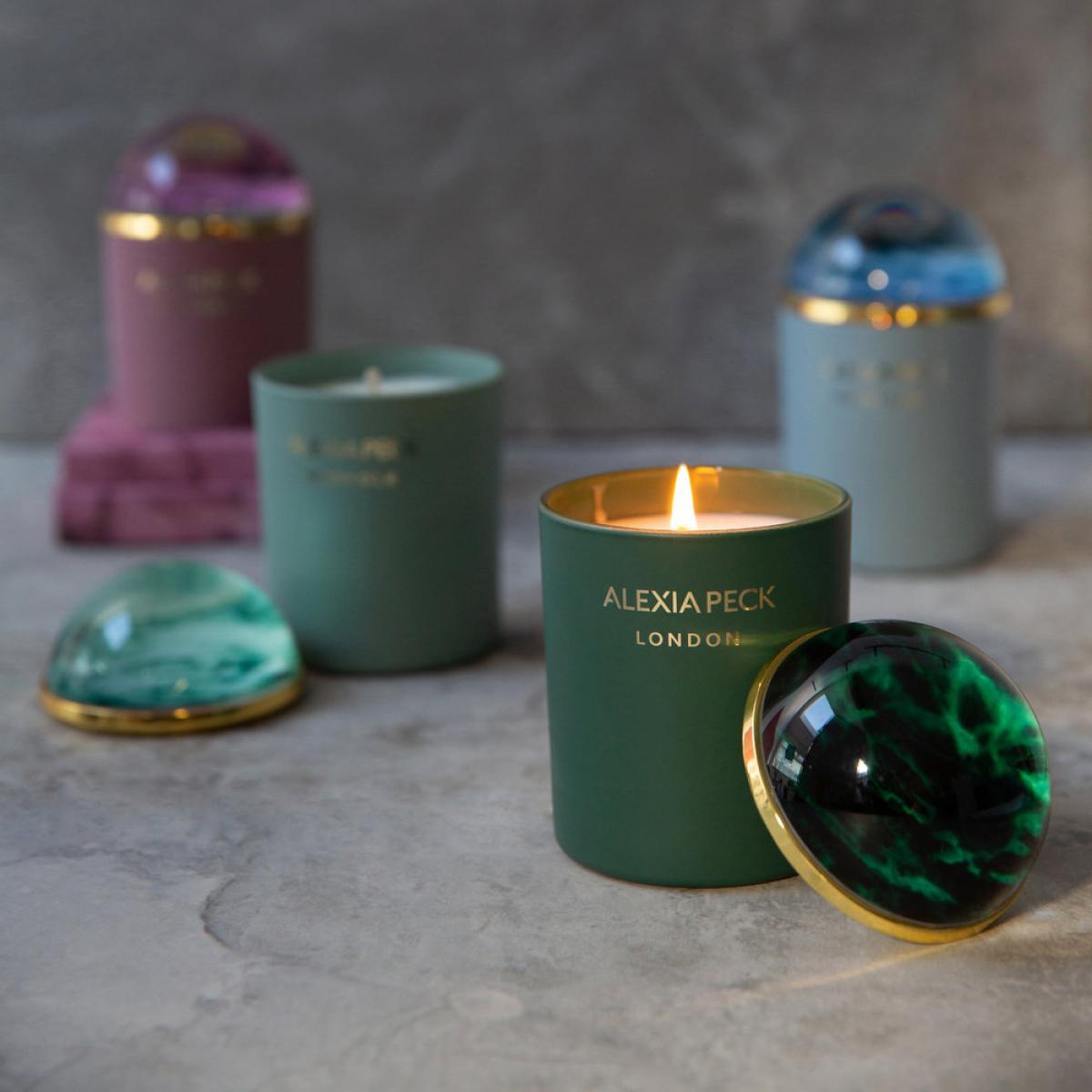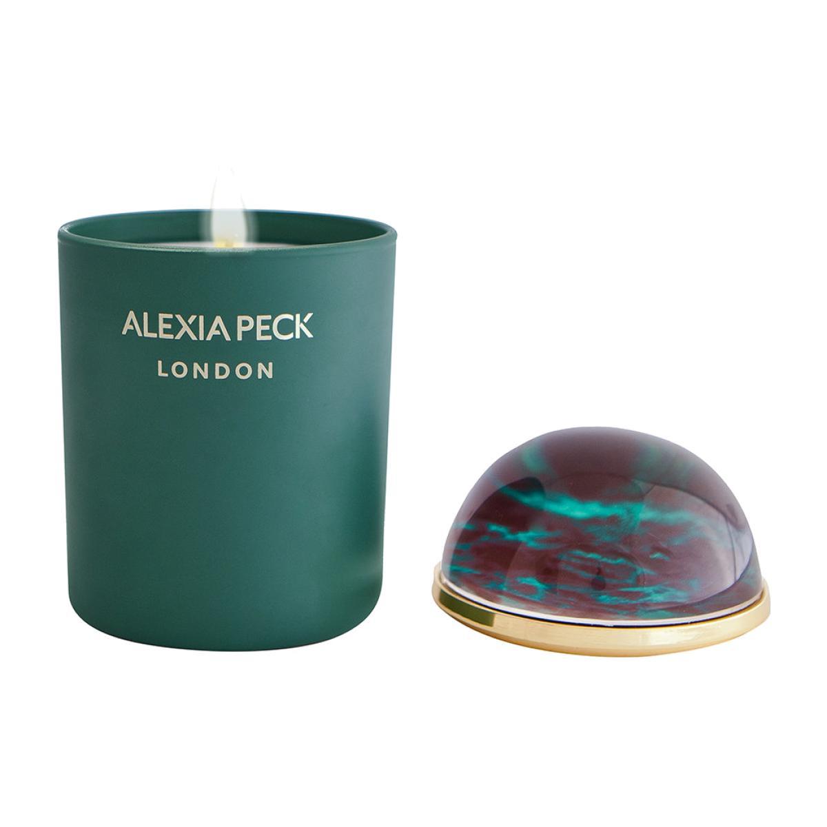 Travel the globe on a scenting experience with this London candle from Alexia Peck. Filled with notes of old English flowers, this candle is inspired by the hidden parks, squares and gardens scattered all over the city of London. Scented with heady notes of English roses, violets and lilies, the light, floral fragrance has been blended with richer leathery tones of amber and sandalwood reminiscent of gentlemen’s clubs and dusk. Encased in a dark green vessel, it is topped with a swirling green glass dome lid which can be used as a beautiful paperweight long after the candle is finished.