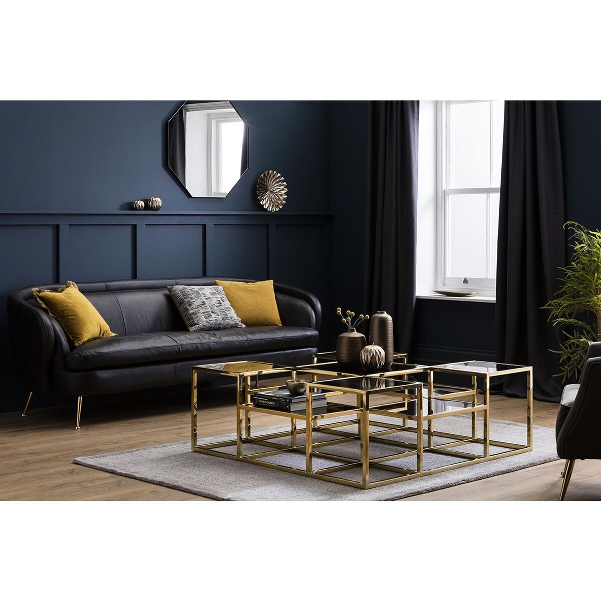 For the everyday that feels naturally luxurious. Add a touch of glam with the Alexis range, perfect for traditional interiors and neutral palettes in search of dazzling pieces with the wow factor. Sculptured metal legs, base and body with a sumptuous golden finish and a crisp contrast black tinted glass top create the perfect coffee table. Add just the simplest of accessories to make this piece truly pop, a faux plant, tray or vase is all it takes.