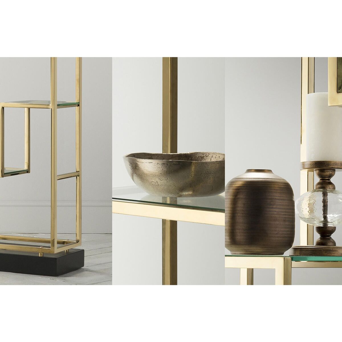 For the everyday that feels naturally luxurious. Add a touch of glam with the Alexis range, perfect for traditional interiors and neutral palettes in search of dazzling pieces with the wow factor. Sculptured metal base and body with a sumptuous golden finish and a crisp contrast black tinted glass top create the perfect display shelving. Add just the simplest of accessories to make this piece truly pop, a faux plant, tray or vase is all it takes.