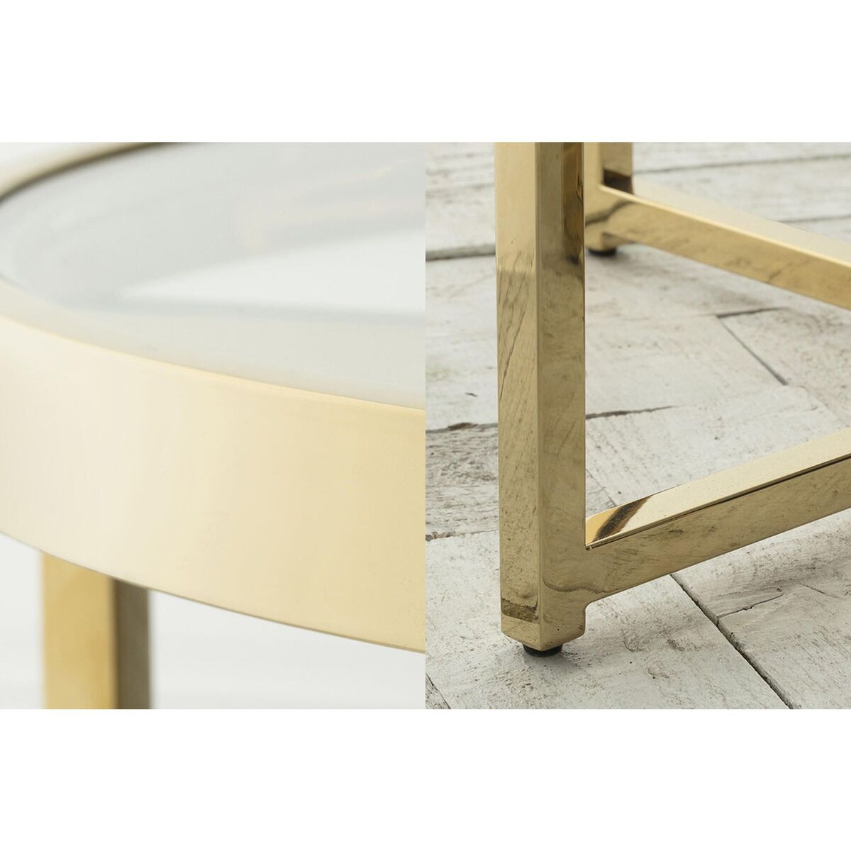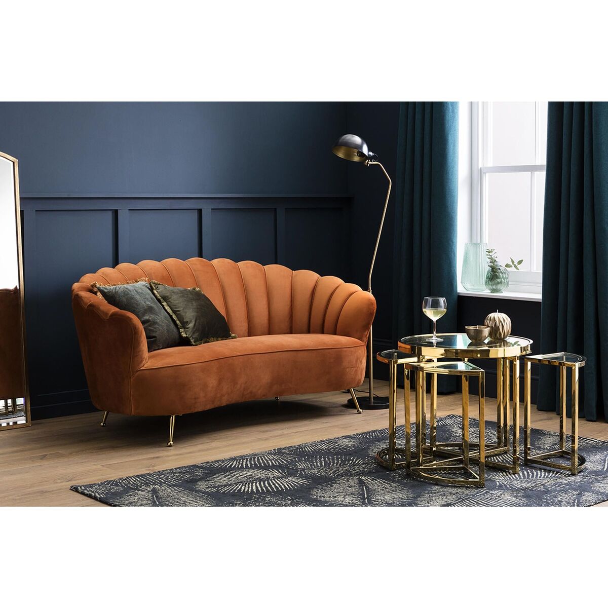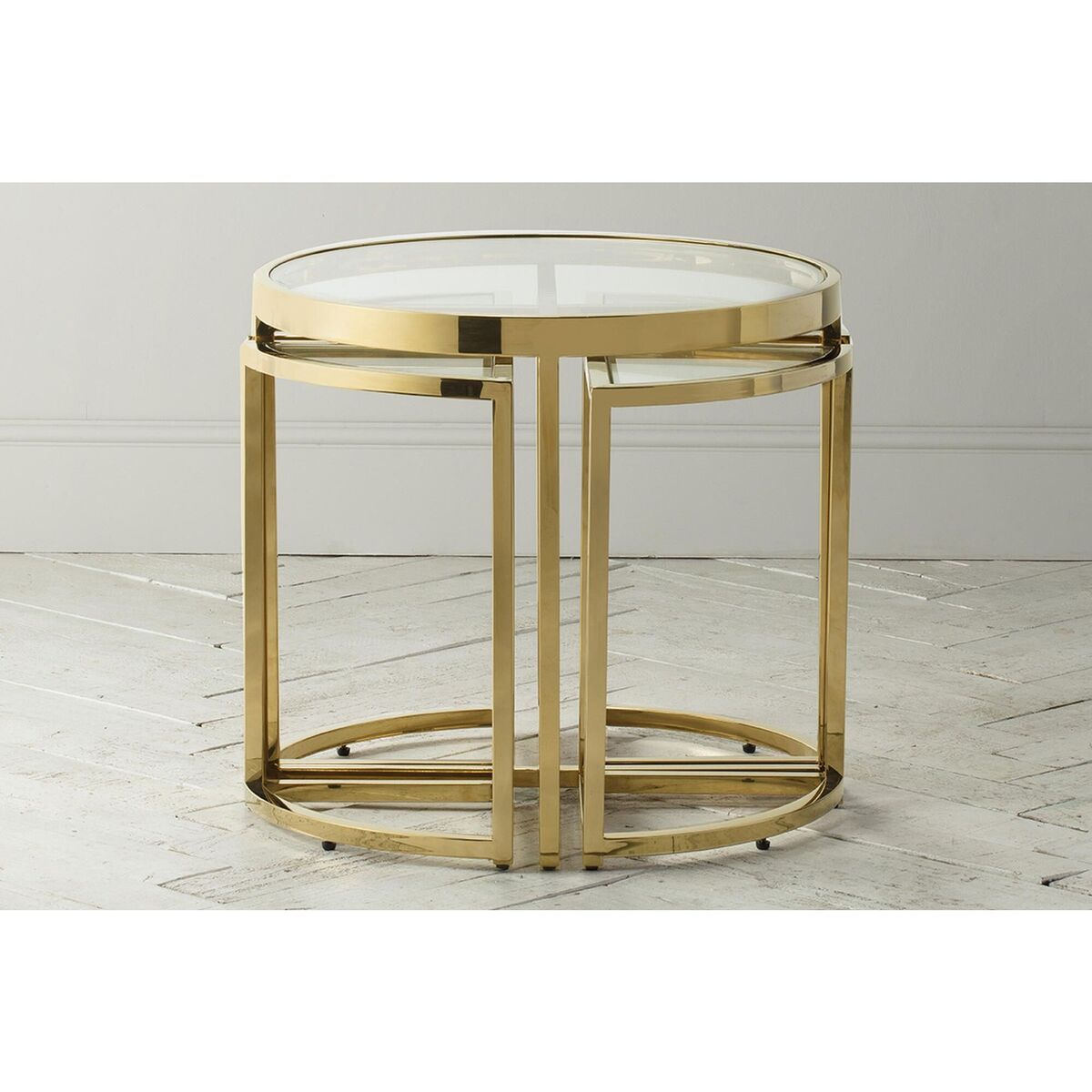 For the everyday that feels naturally luxurious. Add a touch of glam with the Alexis range, perfect for traditional interiors and neutral palettes in search of dazzling pieces with the wow factor. Modern and eye catching this range features a unique nesting design with a sumptuous golden finish and a clear glass top to create the perfect side table. Add just the simplest of accessories to make this piece truly pop, a faux plant, tray or vase is all it takes. More Information: Materials:Metal, GlassDimensions:H:48cm x W:60cm x D:55cm; 22kgs Assembly Required: No