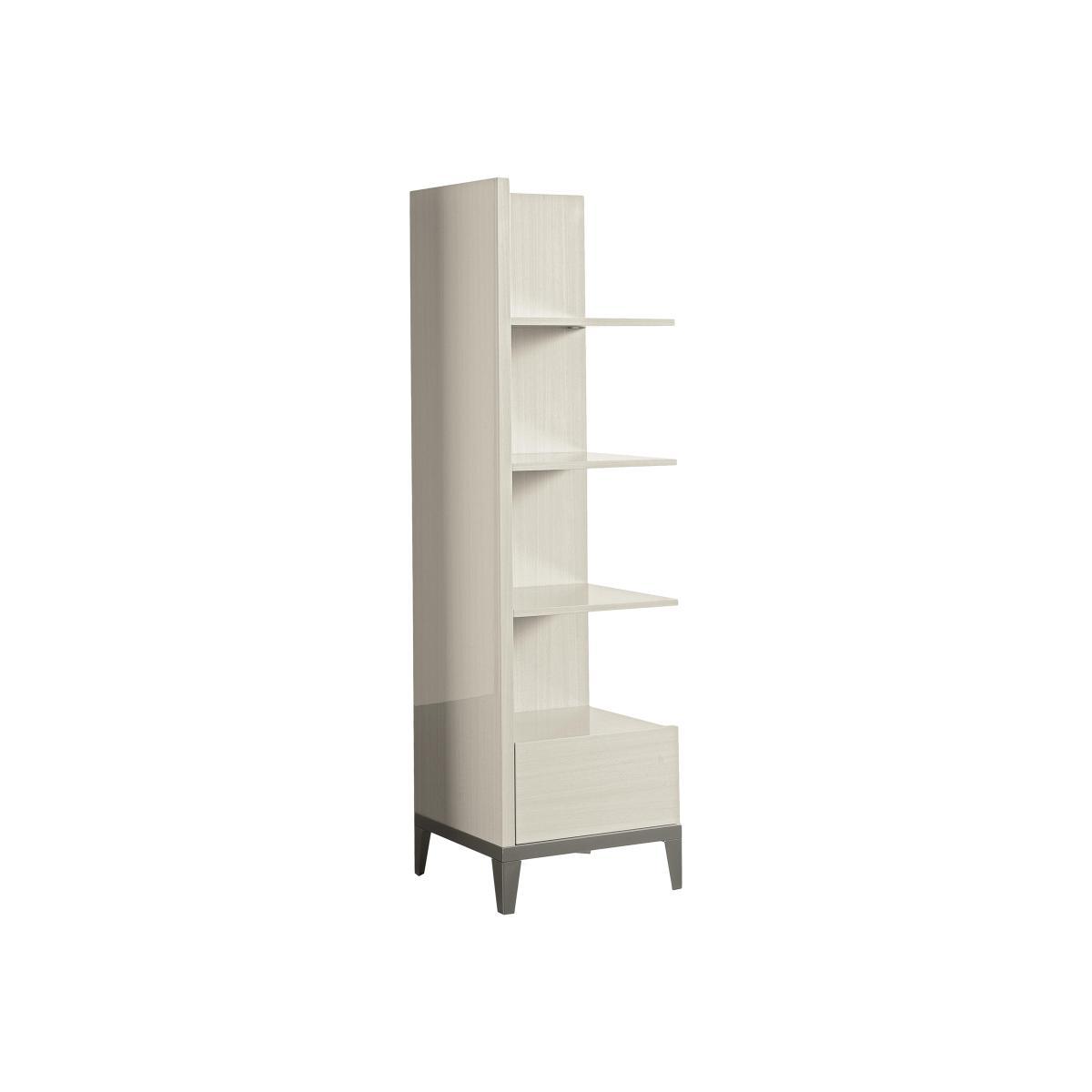 The Italians know a thing or two about style and glamour, as this sleek contemporary dining and living collection from ALF shows. Each piece is finished with luxurious cream coloured Koto wood veneers while detailing includes distinctive square wooden handles and fashionably tapered legs. Your guests may never want to say ciao!. This stunning high gloss modern bookcase from ALF features three floating shelves and a lower drawer. Finished with cream coloured glossy koto wood veneers. Why you'll love it. Glamorous modern bookcase from ALF. Right hand facing profile also available. 3 floating shelves and a lower drawer. Perfect for books and displaying treasures. Lacquered cream coloured koto wood veneers. Short, tapered legs. Fantastic value price for high-end style. Find Italian design at great prices Furniture Village. What you need to know. Three floating corner shelves. Wood and particle board construction. Cream coloured high gloss lacquered koto wood finish. Hairline marks are a natural feature of this furniture's high gloss finish. High gloss surfaces can reveal the polishing process in the form of small scratches. Avoid abrasive cleaners and direct sunlight. Wipe clean with a damp cloth and dry with a soft duster. Part of the ALF Alpine dining and occasional range.