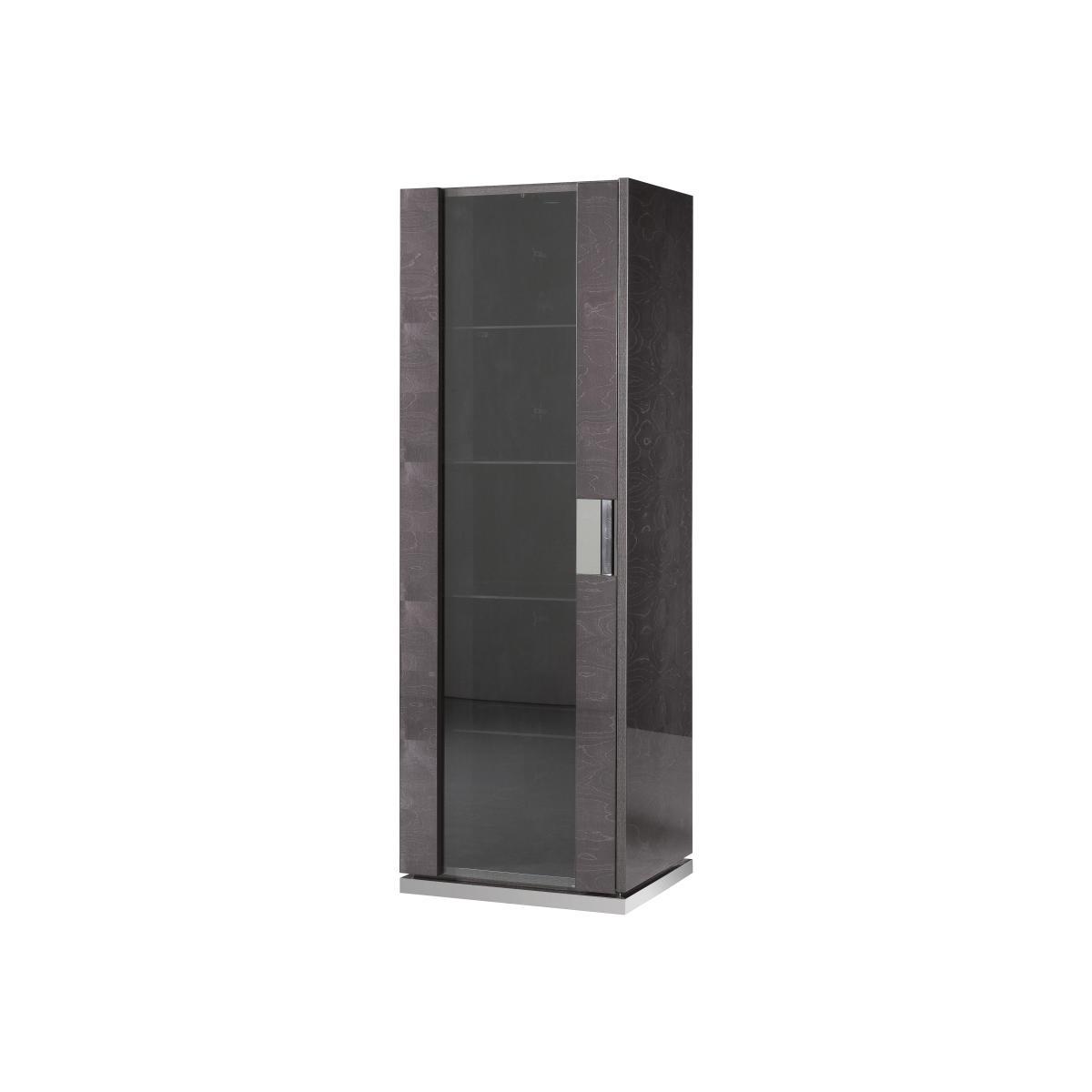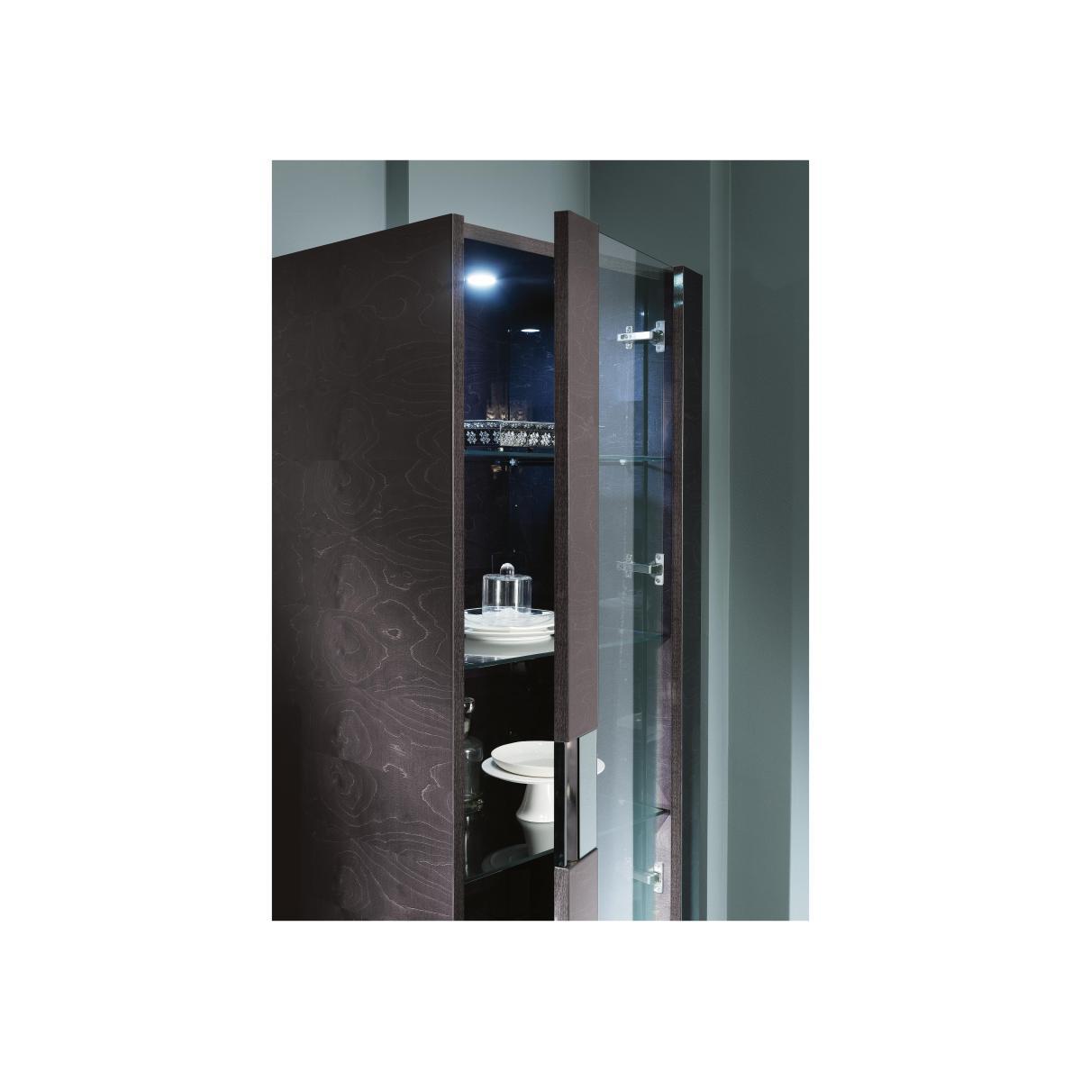 Unmistakeably Italian and exceptionally stylish, the ALF Avellino collection offers beautifully-proportioned and luxuriously-finished contemporary living and dining room furniture. Pieces are finished with a high-gloss lacquered dark birch wood veneer interspersed with dark smoky glass. Occasional tables and cabinets offer creative storage elements, streamlined shelving and stylish alcoves with glass doors and mirrored accents. Set on a dramatic pedestal, an extending dining table – available in two sizes - turns any gathering into a special occasion. A dining chair completes this high-quality, high-style collection. Designed and crafted in Italy by ALF, furniture makers of renown, ALF Avellino is also available as a bedroom collection. Display all your favourite things to stunning effect in the ALF Avellino 1-door left-hand facing curio cabinet. Beautifully designed and made in Italy by internationally-renowned furniture crafters ALF, this gorgeous narrow display cabinet has a high-gloss finish of lacquered birch wood veneer in dark velvet with a striking geometric panelled effect. Behind the single glass door, you’ll find four adjustable shelves and built in LED lighting. A wide mirrored band incorporates a door handle. The ALF Avellino 1-door left-hand facing curio cabinet is part of the exceptional ALF Avellino living and dining room collection. If you love the look of this display piece but require more shelf space, consider pairing it with the ALF Avellino 1-door right-hand facing curio cabinet or opt for the larger ALF Avellino 2-door curio cabinet. Top Tip. This product is made with real wood veneers and as such may show natural wood grain characteristics. Individual panels may not be identical.