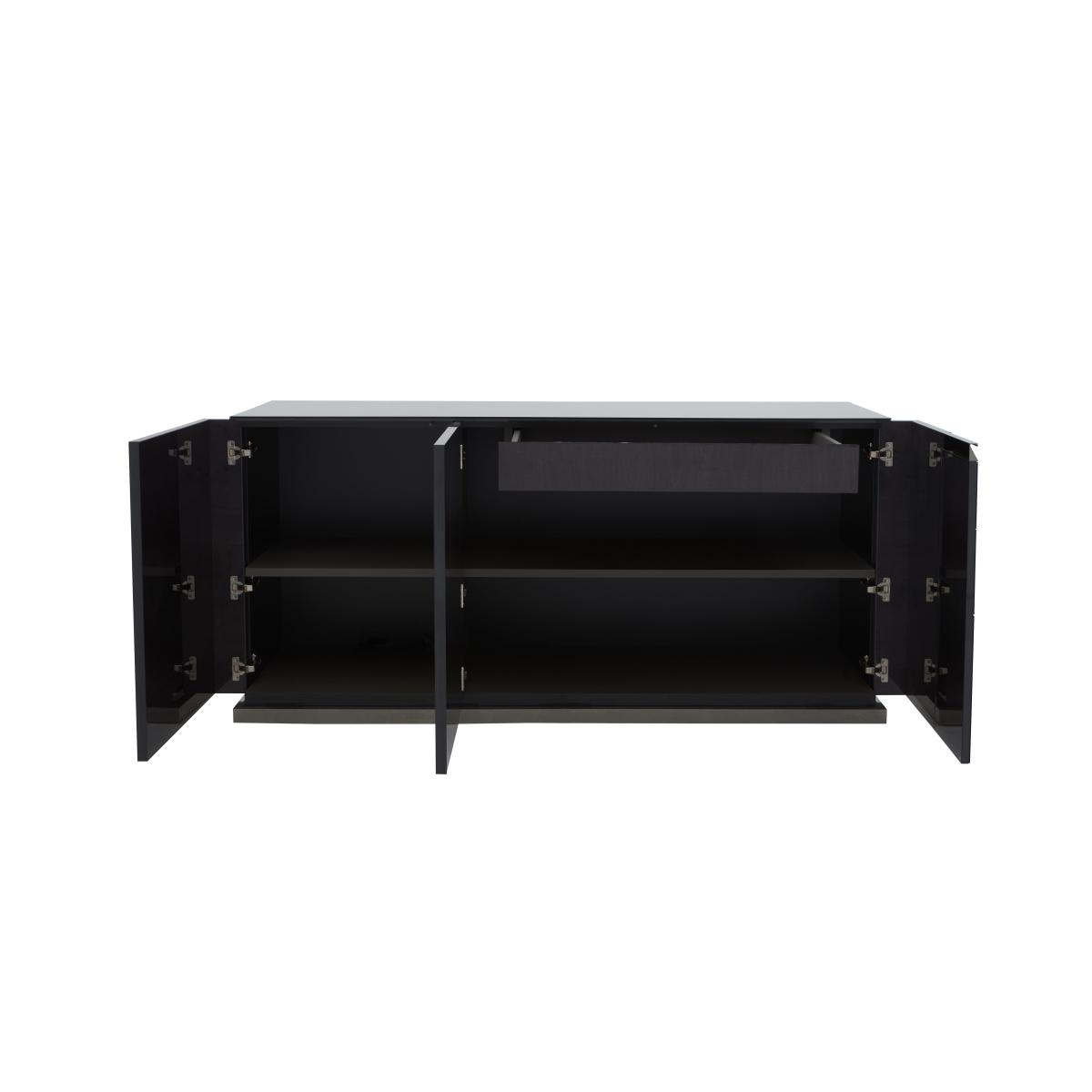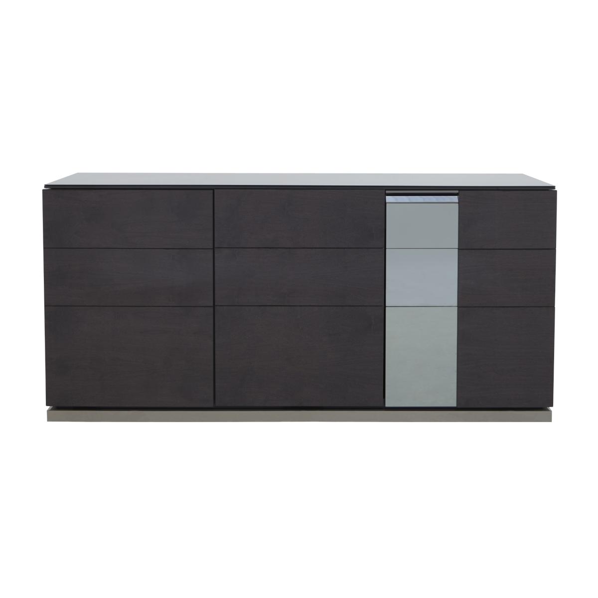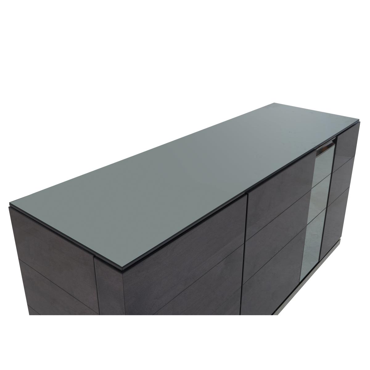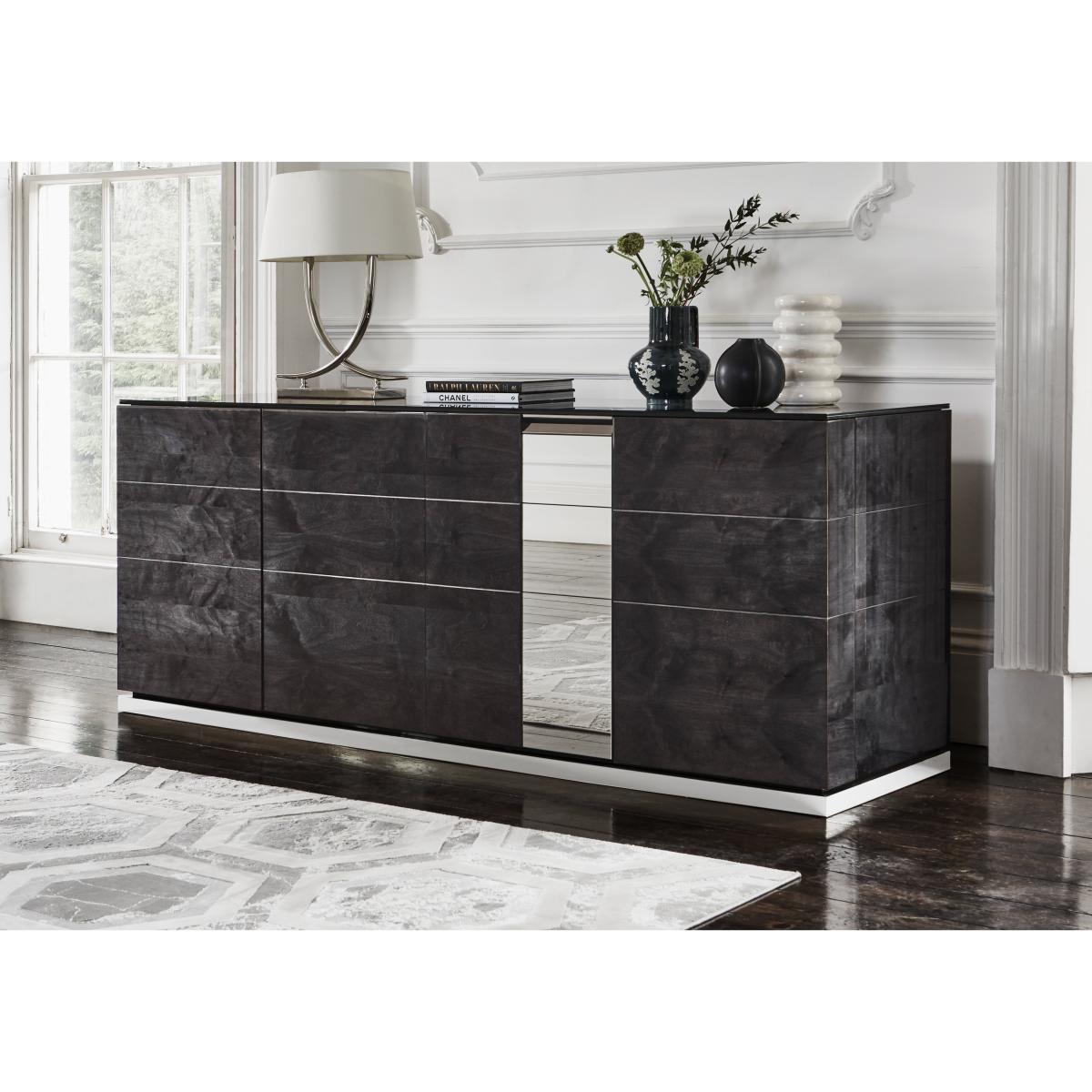 Unmistakeably Italian and exceptionally stylish, the ALF Avellino collection offers beautifully-proportioned and luxuriously-finished contemporary living and dining room furniture. Pieces are finished with a high-gloss lacquered dark birch wood veneer interspersed with dark smoky glass. Occasional tables and cabinets offer creative storage elements, streamlined shelving and stylish alcoves with glass doors and mirrored accents. Set on a dramatic pedestal, an extending dining table – available in two sizes - turns any gathering into a special occasion. A dining chair completes this high-quality, high-style collection. Designed and crafted in Italy by ALF, furniture makers of renown, ALF Avellino is also available as a bedroom collection. Stock code: 9180HW6630. 1 Please note: this clearance item has limited stock and is subject to availability. In stunning contemporary style, the Italian-made ALF Avellino sideboard brings high-gloss luxury to your dining room. Finished with lacquered dark-velvet birch wood veneer in a panelled arrangement and featuring a sleek smoky mirrored top, this sideboard oozes charm and sophistication. The broad vertical mirrored band adds a touch of designer flair. It’s incredibly spacious too, designed to hold everything from serving dishes to wine glasses and dinner ware to cutlery. Four cupboard doors each conceal a drawer and a fixed shelf, and there’s also a useful pull-out shelf. The ALF Avellino sideboard is part of the sophisticated ALF Avellino dining collection which includes a wide range of pieces including occasional tables, a TV base, display cases and the stunning ALF Avellino extending dining table. Top Tip: This product is made with real wood veneers and as such may show natural wood grain characteristics. Individual panels may not be identical. Please note: Due to its weight, the ALF Avellino sideboard can only be delivered to the ground floor of your home. WARNING! Furniture can tip over unexpectedly and cause injury. This item must be fixed to a wall using the anti-tip kit provided. Be sure to use the correct wall fixings suitable for the walls in your home. Furniture Village is not able to fix anti-tip devices for you. Seek professional advice if you are unsure.