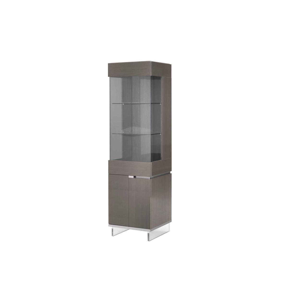 Theres plenty of room to display and store your favourite things in this gorgeous high- gloss display cabinet with veneer inlays and acrylic legs. Practical luxury handcrafted in Italy. Why youll love it Bold modern design with a sleek finish from Italian furniture maker ALF. Luxury on a grand scale. High- gloss inlaid panels. Taupe colour is versatile and on trend. Transparent acrylic base. Brushed aluminium handles and trim. Seven- layer lacquered finish is beautiful and incredibly durable. Soft- close doors. Handcrafted in Italy. What you need to know Inlaid veneers are made of toulipier wood, an American hardwood. Hinged at the left, the upper display area has 2 glass shelves. Lower cupboard has 1 wooden shelf. Finish may show some very light marks as a result of the buffing process. Complete the look with the ALF Corrado sideboard, in two sizes, and bookcase. WARNING! Furniture can tip over unexpectedly and cause injury. This item must be fixed to a wall using the anti- tip kit provided. Be sure to use the correct wall fixings suitable for the walls in your home. Furniture Village is not able to fix anti- tip devices for you. Seek professional advice if you are unsure.