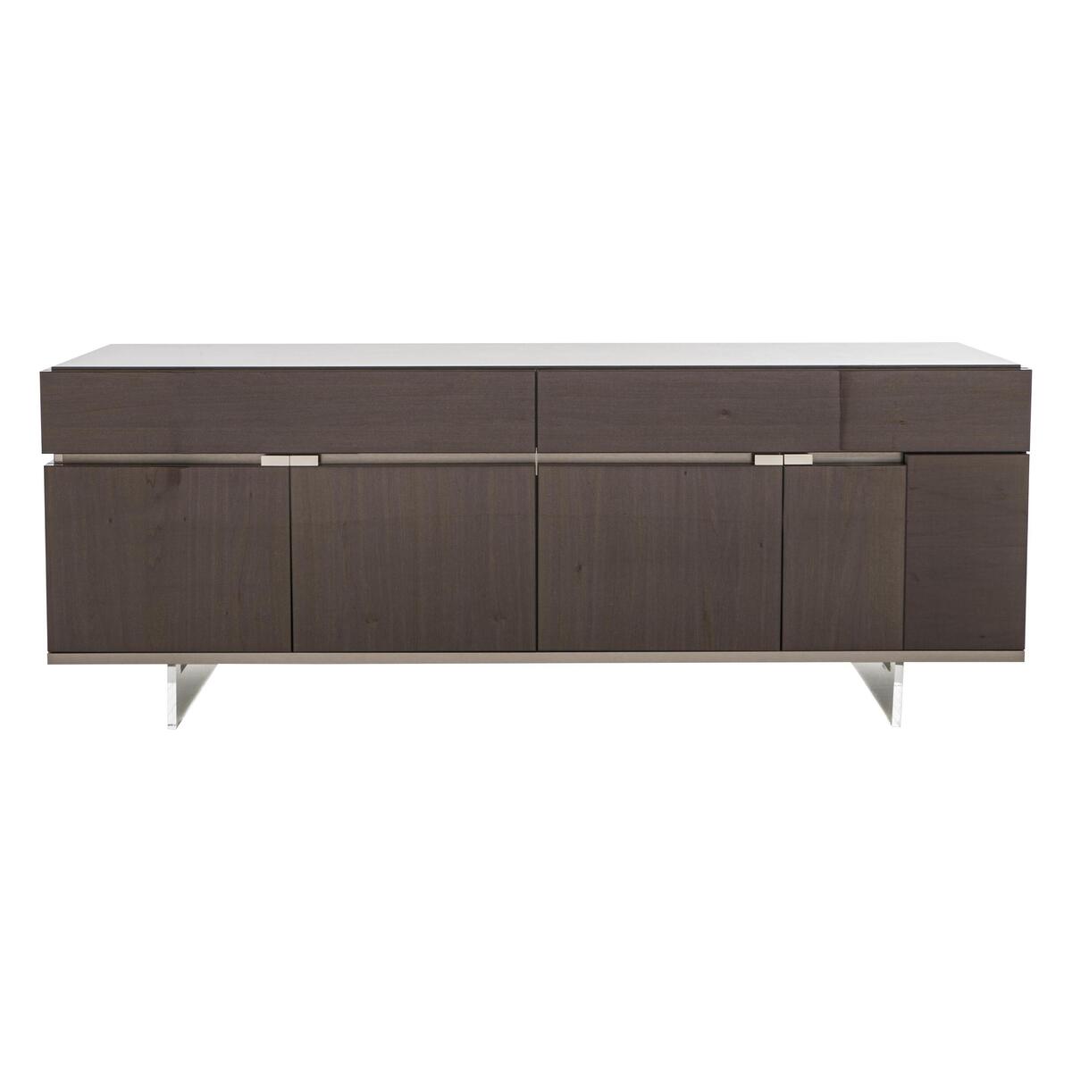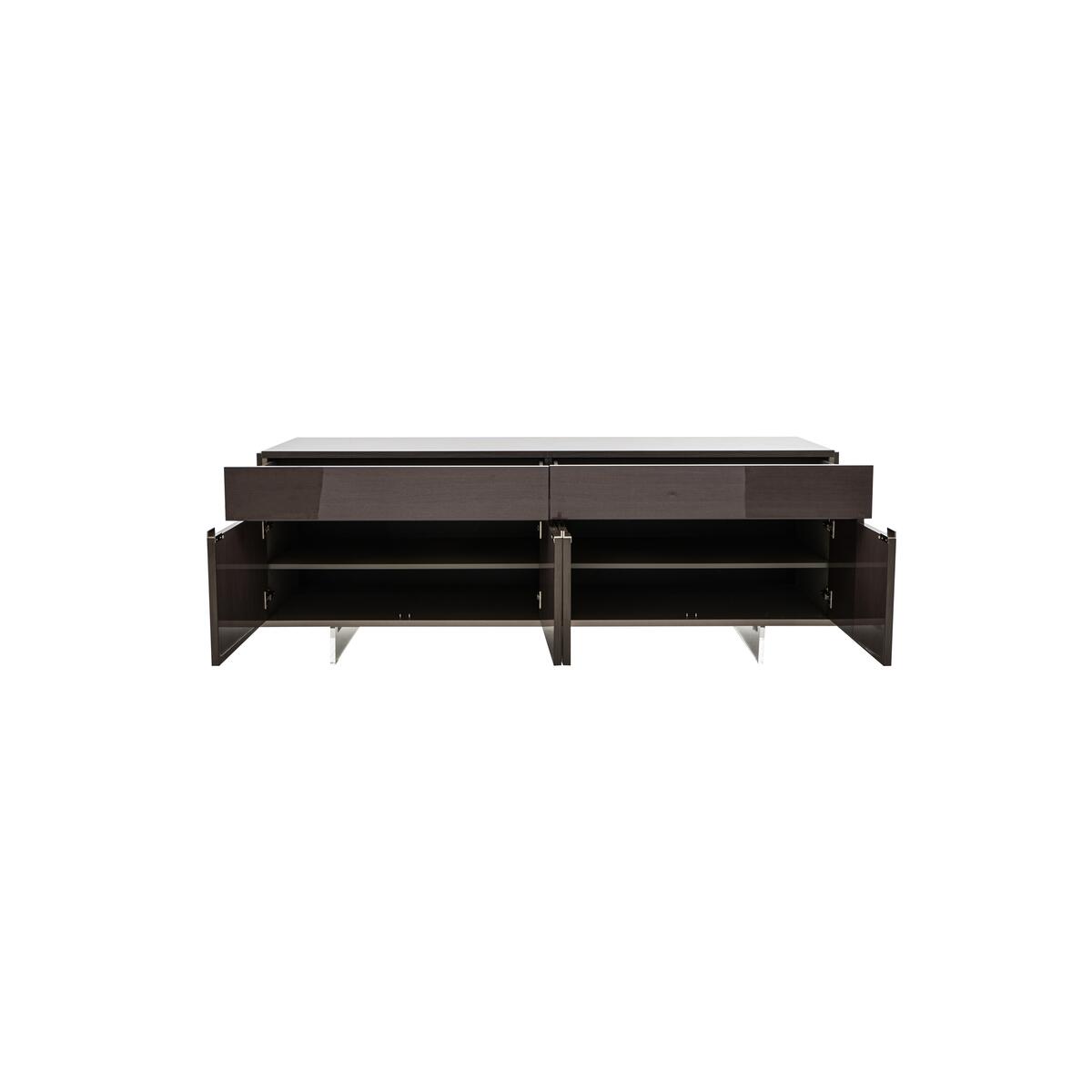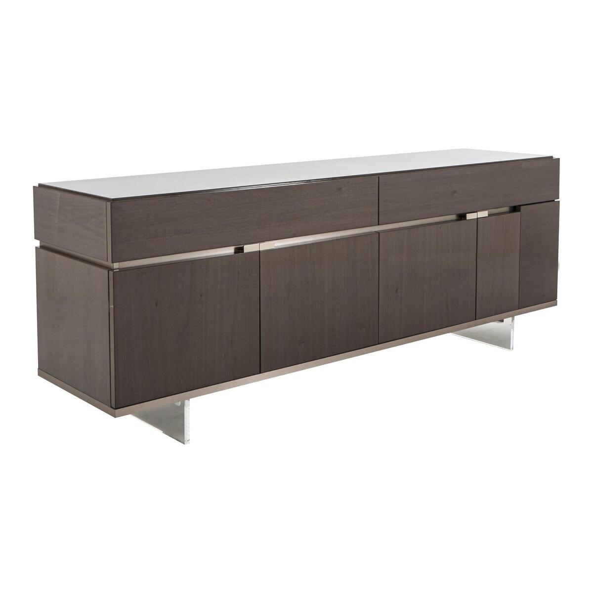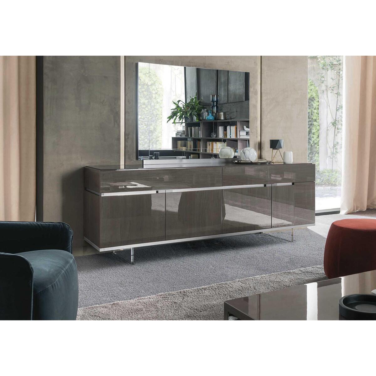 From the master crafters of luxury Italian furniture, the ALF Corrado collection showcases the brand’s signature glossy finish alongside bold modern design details like clear acrylic legs and brushed aluminium accents. Finished in a rich warm taupe colour and with high-shine veneer inlays, pieces are large in scale and offer practical surfaces for dining, display and storage. Handmade in Italy, ALF Corrado brings contemporary luxury to living and dining rooms. A contemporary storage solution with a luxurious lacquered finish and plenty of eye-catching details – like those acrylic legs – this large sideboard is the essence of Italian style. Why you’ll love it. Bold modern design with a sleek finish from Italian furniture maker ALF. Luxury on a grand scale. High-gloss inlaid panels. Taupe colour is versatile and on trend. Transparent acrylic base. Brushed aluminium handles and trim. Seven-layer lacquered finish is beautiful and incredibly durable. Soft-close doors and drawers. Handcrafted in Italy. What you need to know. Inlaid veneers are made of toulipier wood, an American hardwood. 2 wide drawers for cutlery and utensils. 2 double-door cupboards each with 2 adjustable wooden shelves. Finish may show some very light marks as a result of the buffing process. Complete the look with the ALF Corrado curio cabinet, in two sizes, and bookcase. WARNING!. Furniture can tip over unexpectedly and cause injury. This item shall be fixed to a wall using the anti-tip kit provided with the furniture. Be sure to use the correct wall fixings suitable for the walls in your home.