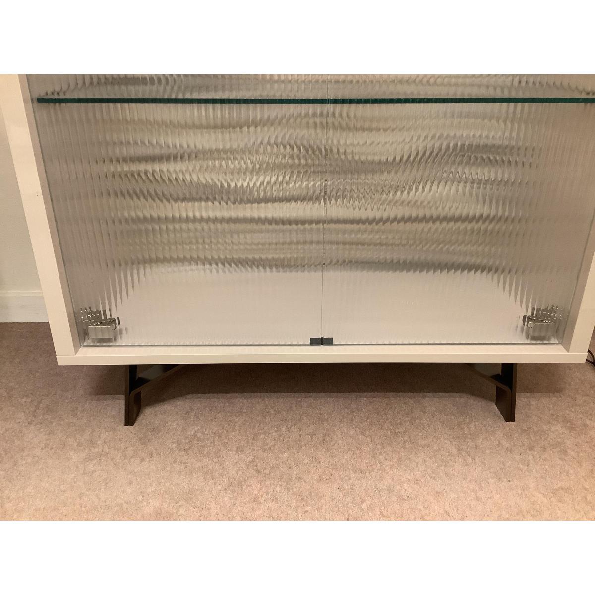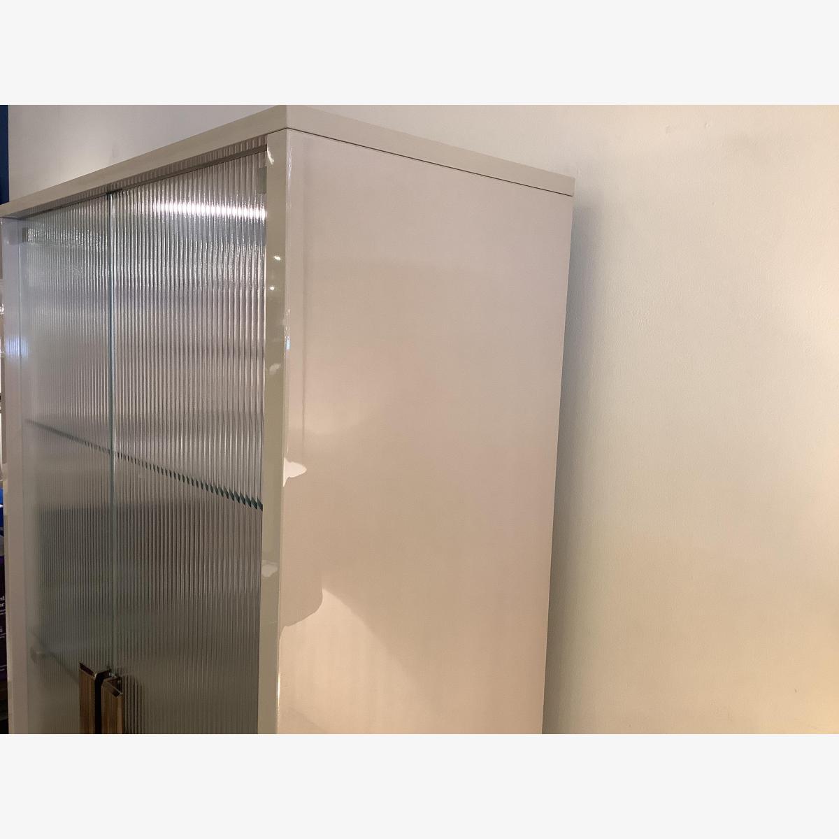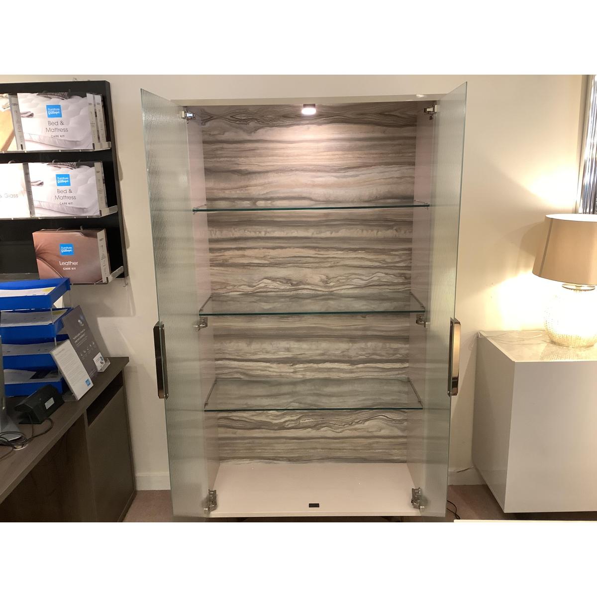 A stunning design of ribbled glass, high gloss cashmere coloured sides and internally lit glass shelves, will highlight any distinctive collections. Ex-Display - may have slightly marks or scratches.