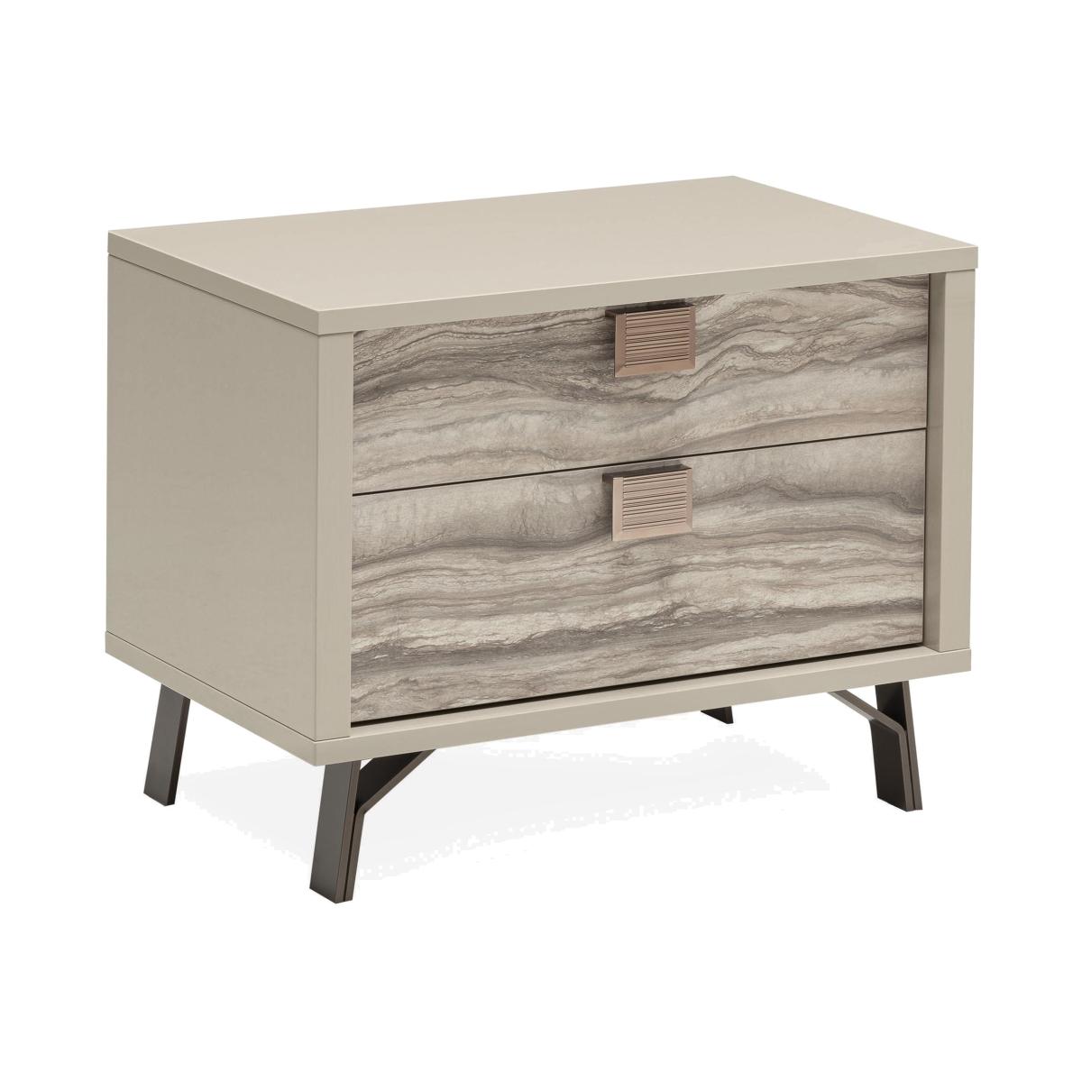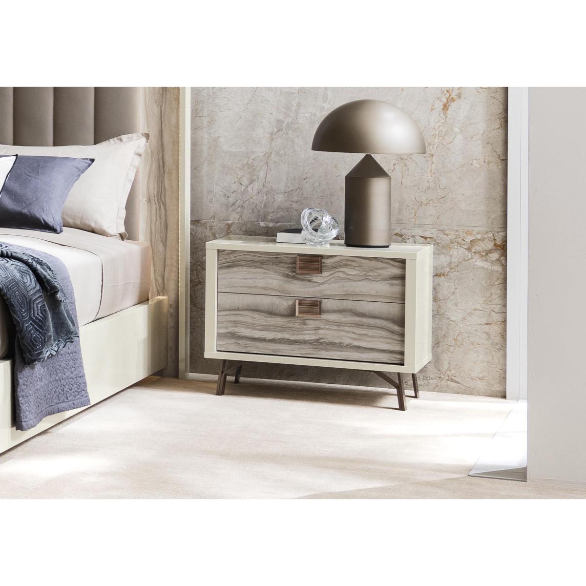 If you’re looking for bedroom furniture that has the wow factor – in an entirely contemporary Italian way – you’ve found it. With its uniquely stylish finish that’s a combination of high-gloss and matt surfaces, the ALF Franco bedroom range instantly says distinctive Italian style. This carefully-curated collection comprises a statement bed frame with a tall upholstered headboard, several sizes of chests of drawers and two styles of bedside cabinet. The details are lovely too – drawers have a bold marbled accent pattern and bronze-coloured handles. An online exclusive, the ALF Franco bedroom furniture collection is handcrafted in Italy. The ALF Franco range also includes living room and dining room furniture. Spacious and practical, a pair of these two-drawer bedside cabinets will complete your bedroom in style. Handmade in Italy by ALF.Why you'll love it Roomy storage meets bold modern style in this 2-drawer bedside cabinet. A truly different look from this Italian design house. High-gloss frame and marbled, matt-finish drawers make a statement. Soft-closing drawers have bronze-coloured handles. Durable finish stands up to scratches and scuffs. Handmade in Italy. A Furniture Village online exclusive. This 2-drawer bedside cabinet is part of the ALF Franco bedroom collection. What you need to know Finish may show small scratches as a result of the polishing process. Do not place in direct sunlight. Do not use abrasive cleaning products. Wipe clean with a damp cloth, and dry with a soft duster. We recommend using coasters and placemats at all times. The ALF Franco look is also available in living and dining room furniture. WARNING!