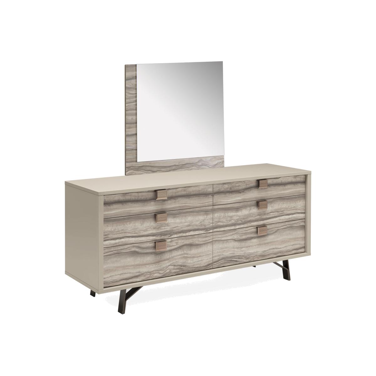 If you’re looking for bedroom furniture that has the wow factor – in an entirely contemporary Italian way – you’ve found it. With its uniquely stylish finish that’s a combination of high-gloss and matt surfaces, the ALF Franco bedroom range instantly says distinctive Italian style. This carefully-curated collection comprises a statement bed frame with a tall upholstered headboard, several sizes of chests of drawers and two styles of bedside cabinet. The details are lovely too – drawers have a bold marbled accent pattern and bronze-coloured handles. An online exclusive, the ALF Franco bedroom furniture collection is handcrafted in Italy. The ALF Franco range also includes living room and dining room furniture. Statement style, beautifully handcrafted by ALF. This large double dresser and mirror set showcases a bold contemporary finish and striking design details. Why you'll love it Create your dream bedroom around this 6-drawer double dresser and mirror set. A truly different look from this Italian design house. Dresser’s high-gloss frame and marbled, matt-finish drawers make a statement. Soft-closing drawers have bronze-coloured handles. Matching mirror with asymmetric frame can be freestanding or fixed to a wall. Durable finish stands up to scratches and scuffs. Handmade in Italy. A Furniture Village online exclusive. This 6-drawer double dresser and mirror is part of the ALF Franco bedroom collection. What you need to know Wooden supports at back allow the mirror to be freestanding. Hanging fittings for mirror not included. Finish may show small scratches as a result of the polishing process. Do not place in direct sunlight. Do not use abrasive cleaning products. Wipe clean with a damp cloth, and dry with a soft duster. We recommend using coasters and placemats at all times. The ALF Franco look is also available in living and dining room furniture. WARNING!