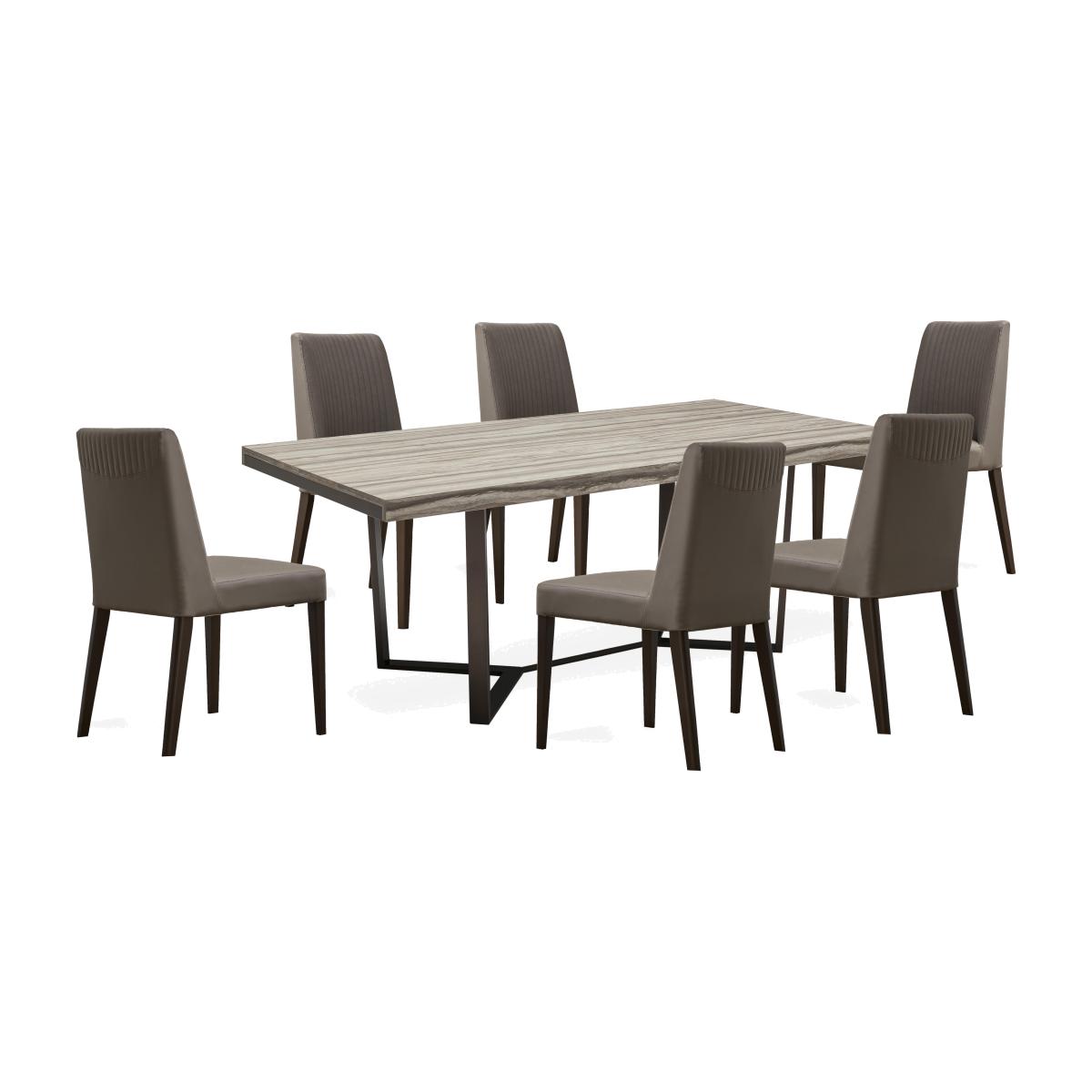 The ALF Franco dining range accomplishes something rather special. It combines a uniquely stylish look with a finish that’s truly high-performance so you can enjoy furniture that’s very hardwearing and exceptionally good looking. Designed for both family spaces and formal interiors, dining rooms and kitchen diners, the collection’s extending dining tables and dining sets showcase its signature matt marbled finish that really delivers the wow factor. The range also features storage pieces with sleek high-gloss frames, matt or ribbed glass doors and statement bronze-coloured handles. The ALF Franco dining collection is handcrafted in Italy. You can always expect the unexpected from design house ALF. This dining set is truly different and very versatile thanks to its bold marbled top and kitchen diner-friendly durable finish. Why you'll love it Fabulous dining set takes you from family meals to elegant dinner parties. A truly different look from this Italian design house. Standout matt table top with a bold and beautiful marbled design. Extra-durable top stands up to scratches, scuffs and spillages. Elegant geometric base is made of scratch-resistant metal with a bronze finish. With 2 contrast-pattern extension leaves that fit neatly onto the table ends. The 6 dining chairs have contemporary lower-profile backs. Upholstered in taupe faux leather with elegant fluting. Chair legs have a high-gloss bronze finish. Handmade in Italy. This dining set is part of the ALF Franco dining collection. What you need to know Chair cushioning is made of foam. Wood frame and legs. Table seats 6 and extends to seat 8. Extension leaves are stored separately. Table top and chair legs may show small scratches as a result of the polishing process. Do not place in direct sunlight. Do not use abrasive cleaning products. Wipe clean with a damp cloth, and dry with a soft duster. We recommend using coasters and placemats at all times. The ALF Franco look is also available in bedroom furniture.