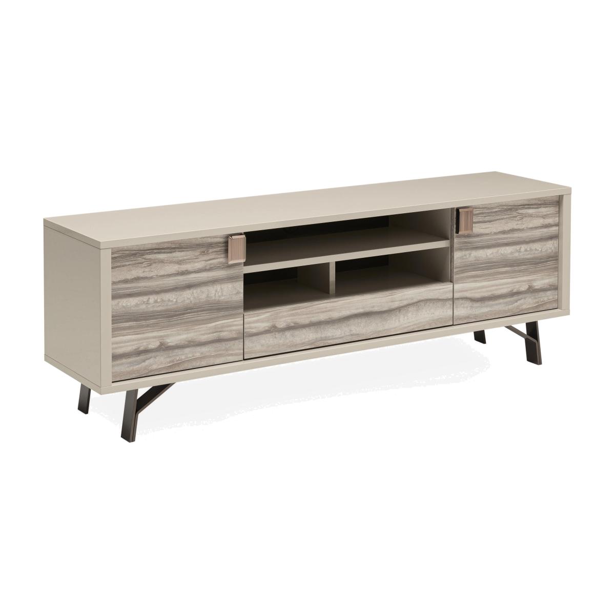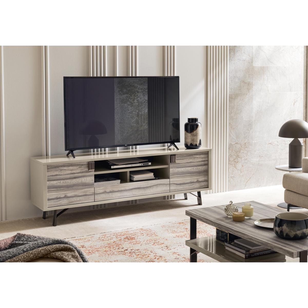 The ALF Franco dining range accomplishes something rather special. It combines a uniquely stylish look with a finish that’s truly high-performance so you can enjoy furniture that’s very hardwearing and exceptionally good looking. Designed for both family spaces and formal interiors, dining rooms and kitchen diners, the collection’s extending dining tables and dining sets showcase its signature matt marbled finish that really delivers the wow factor. The range also features storage pieces with sleek high-gloss frames, matt or ribbed glass doors and statement bronze-coloured handles. The ALF Franco dining collection is handcrafted in Italy. This sleek and stylish TV unit is handmade in Italy by ALF. The finish is fabulous – a combination of high-gloss and matt finishes with a gorgeous marble-effect pattern. Why you'll love it Fabulous TV unit offers the perfect combination of storage and style. A truly different look from this Italian design house. Statement style – a sleek frame with marbled, matt-finish front. Stands up to scratches, scuffs and spillages. Soft-closing cupboard doors with statement bronze-coloured handles. Handmade in Italy. This TV unit is part of the ALF Franco dining collection. What you need to know Drawer, 3 alcoves and 2 single-door cupboards, each with a fixed shelf. Finish may show small scratches as a result of the polishing process. Do not place in direct sunlight. Do not use abrasive cleaning products. Wipe clean with a damp cloth, and dry with a soft duster. We recommend using coasters and placemats at all times. The ALF Franco look is also available in bedroom furniture. WARNING!