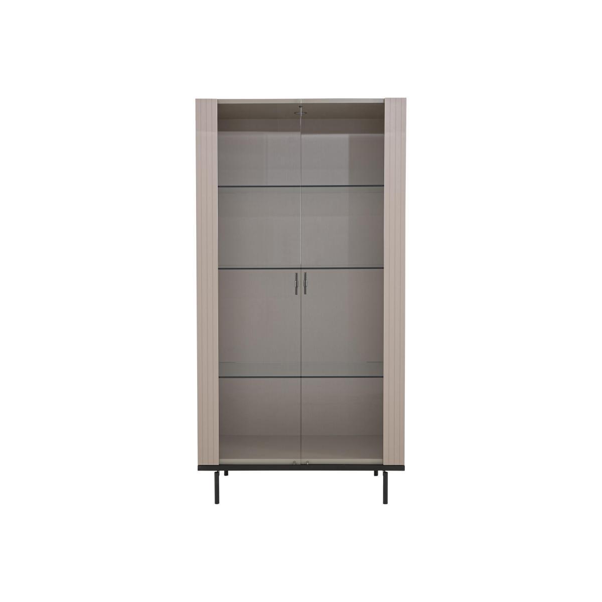Show off your treasured possessions, trophies or whatever you want in this luxurious high-gloss and glass curio cabinet from Italian Furniture makers ALF. High-end style at a great value price. Why you'll love it. Sleek, glossy modern display unit from ALF. With inbuilt lighting to show off all your treasures. Three adjustable glass shelves behind two glass doors. Stunning high-gloss lacquer finish in warm pearl. Six coats of lacquer for a high shine, durable finish. Distinctive vertical etching on the front. Fantastic value price for high-end style. Designed and made in Italy exclusively for Furniture Village. What you need to know. Three adjustable tempered glass shelves. Two tempered glass doors. Wood and particle board construction. Pearl coloured high gloss lacquer finish. Legs and door handles are dark grey precision milled steel. Cabinet doors may need aligning over time. The lacquering process is labour and time intensive, with multiple layers of lacquer applied and dried under UV light, for a clean finish that is highly durable. Hairline marks are a natural feature of this furniture's high gloss finish. Polyurethane and like surfaces can reveal the polishing process in the form of small scratches. Avoid abrasive cleaners and direct sunlight. Wipe clean with a damp cloth and dry with a soft duster. Be sure to tighten the leg bolts every three to four months. Part of the extensive ALF Livia dining range of dining sets and occasional furniture. WARNING!. Furniture can tip over unexpectedly and cause injury. This item should be fixed to a wall using the anti-tip kit provided with the furniture. Be sure to use the correct wall fixings suitable for the walls in your home.