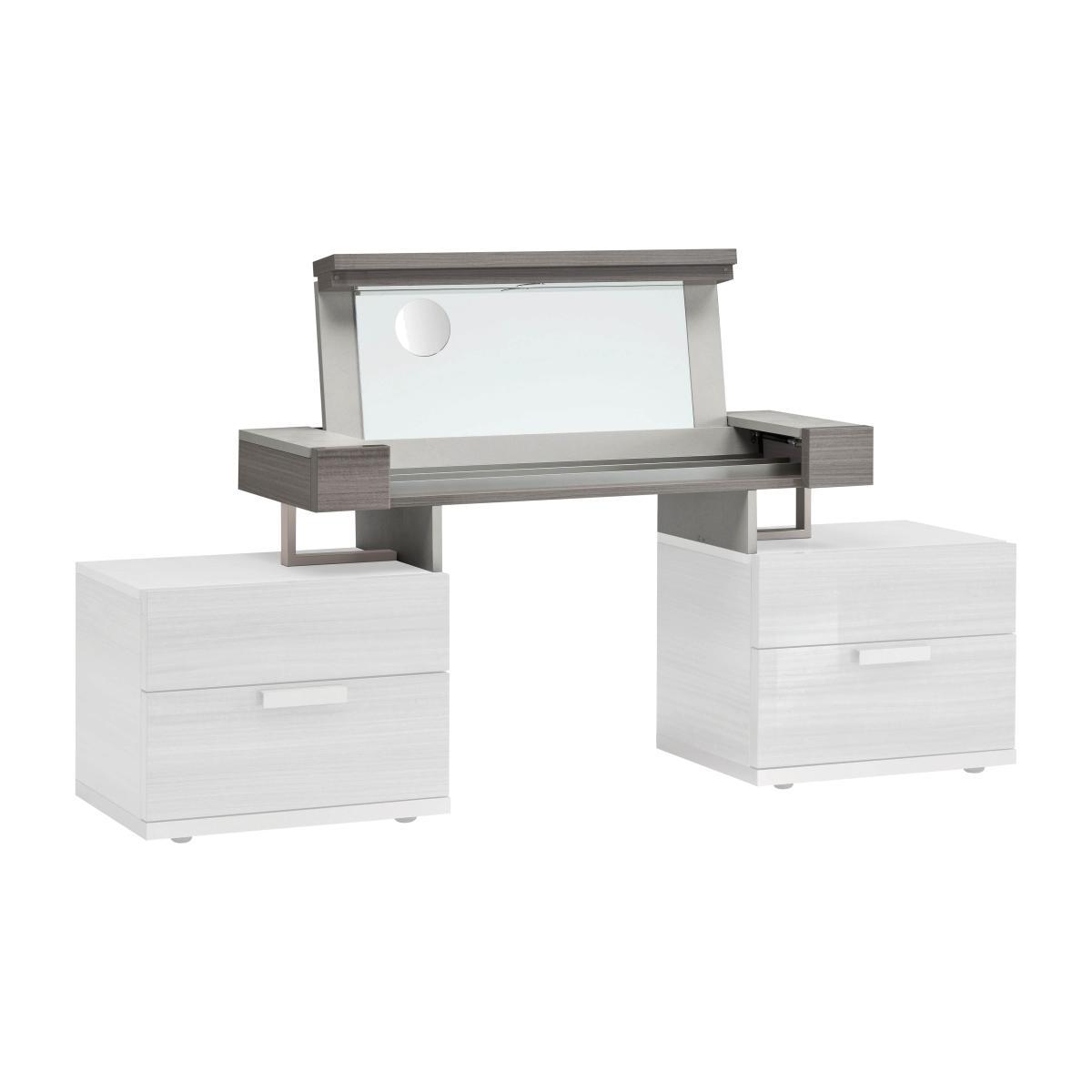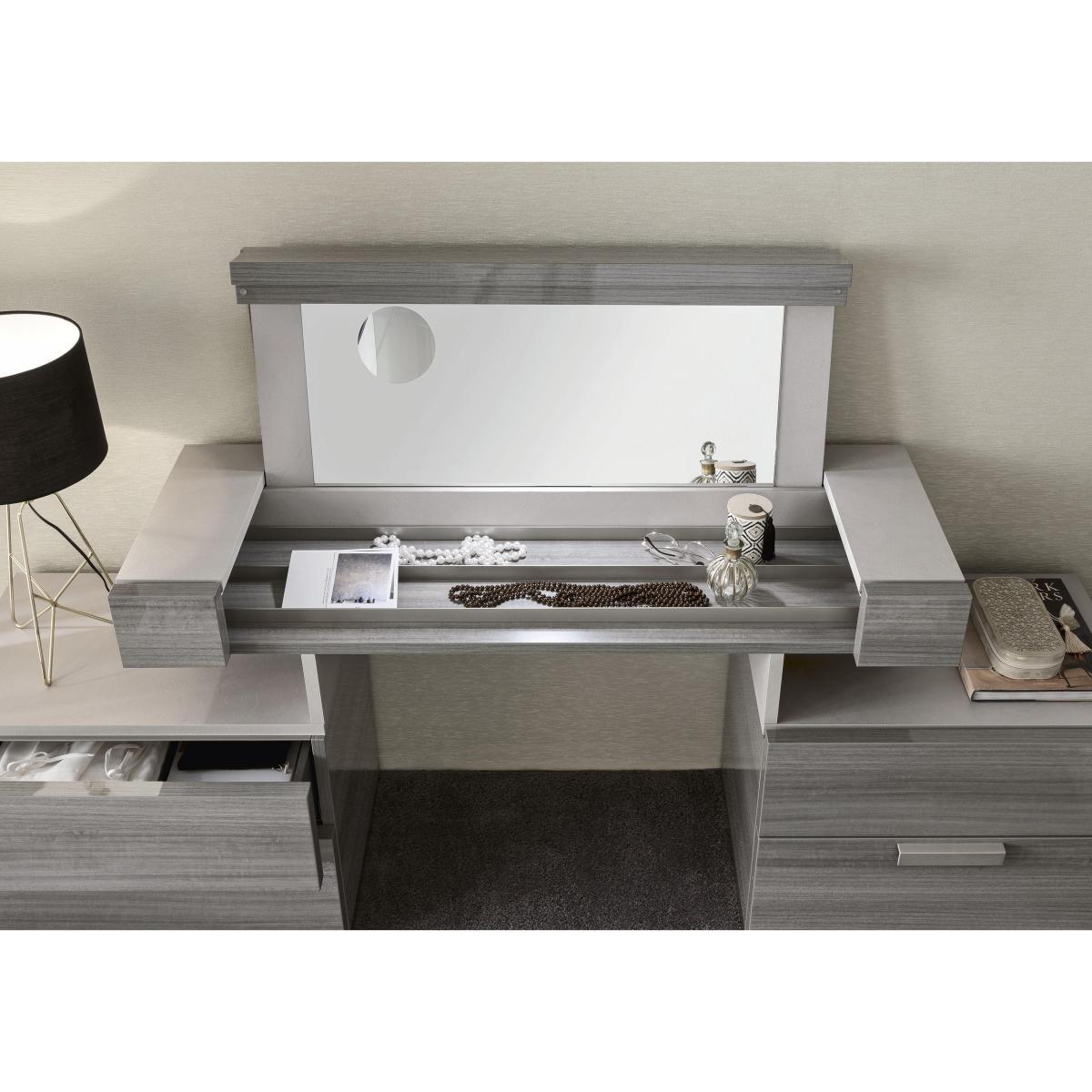 Made in Italy by ALF, furniture makers of renown, the ALF Movado bedroom collection combines sophisticated style with ingenious functionality and, of course, superb craftsmanship. This wide collection comprises wardrobes, chests of drawers, bedside cabinets, bedframes and more, all of which features the range’s signature stunning high-gloss grey finish. Concrete-like cabinet tops have a modern-industrial look, and soft-closing doors and drawers are finished with chrome-effect handles. Style is matched only by the well designed and precisely engineered storage spaces. ALF Movado is exclusively available at Furniture Village. High-gloss grey finish with 7 coats of lacquer. Well-crafted contemporary Italian style. Made by ALF and exclusive to Furniture Village. Ingenious and space-saving, the ALF Movado vanity unit is designed to sit atop two ALF Movado cabinets – either the ALF Movado 2 drawer narrow bedside cabinet or the ALF Movado 2 drawer narrow bedside cabinet – instantly creating the perfect contemporary dressing table. Supported by a geometric leg arrangement, the top of this piece lifts to reveal a mirror and a sizable internal compartment that’s perfect for all those dressing table bits and pieces. A thoroughly modern update of a traditional vanity, the ALF Movado vanity unit showcases the collections signature high-gloss grey finish and stylish contemporary lines. The ALF Movado vanity unit is part of the extensive ALF Movado bedroom collection, which includes a wide range of wardrobes in multiple sizes from two door to six door, several sizes of chests of drawers, and wide and narrow bedside cabinets. There’s also a statement bedframe available in king and super king sizes. All pieces are made in Italy by ALF exclusively for Furniture Village. Hairline marks are a natural feature of this beautiful high gloss finish.