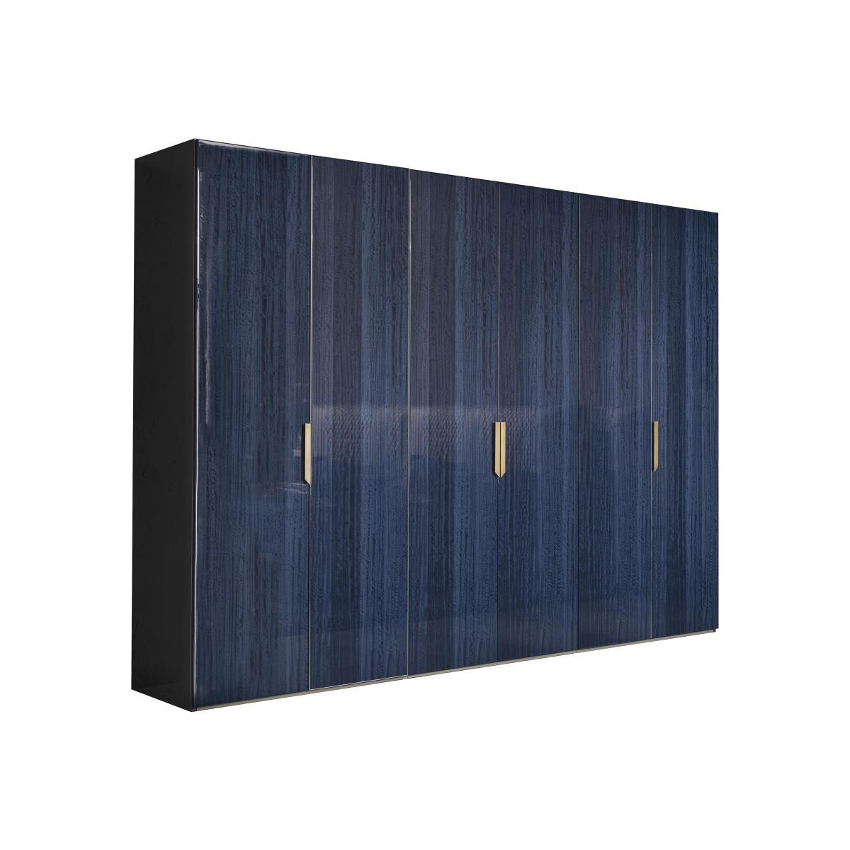 There’s no need for a walk-in closet with the ALF Oceanum wardrobe. The grand Italian design in stunning deep blue cobalt has plenty of room for all your outfits (and your favourite accessories, too). Why you'll love it. Luxury six door wardrobe from prestigious Italian design house ALF. Spacious design with three adjustable shelves and six hanging rails. Attractive brushed brass handles and legs. High-gloss effect in a stunning deep blue cobalt shade. Beautiful and incredibly durable seven-layer lacquered finish. Stunning oak interior that matches the brushed finish perfectly. Handcrafted in Italy. What you need to know. This six door wardrobe is made from natural eucalyptus wood veneers. Finish may show some very light marks as a result of the buffing process. Slight differences are not defects but rather provide added artisanal value. Avoid abrasive cleaners. Wipe with a damp cloth. Part of the contemporary bedroom and living room collection from ALF Italia. WARNING!. Furniture can tip over unexpectedly and cause injury. This item should be fixed to a wall using the anti-tip kit provided with the furniture. Be sure to use the correct wall fixings suitable for the walls in your home.