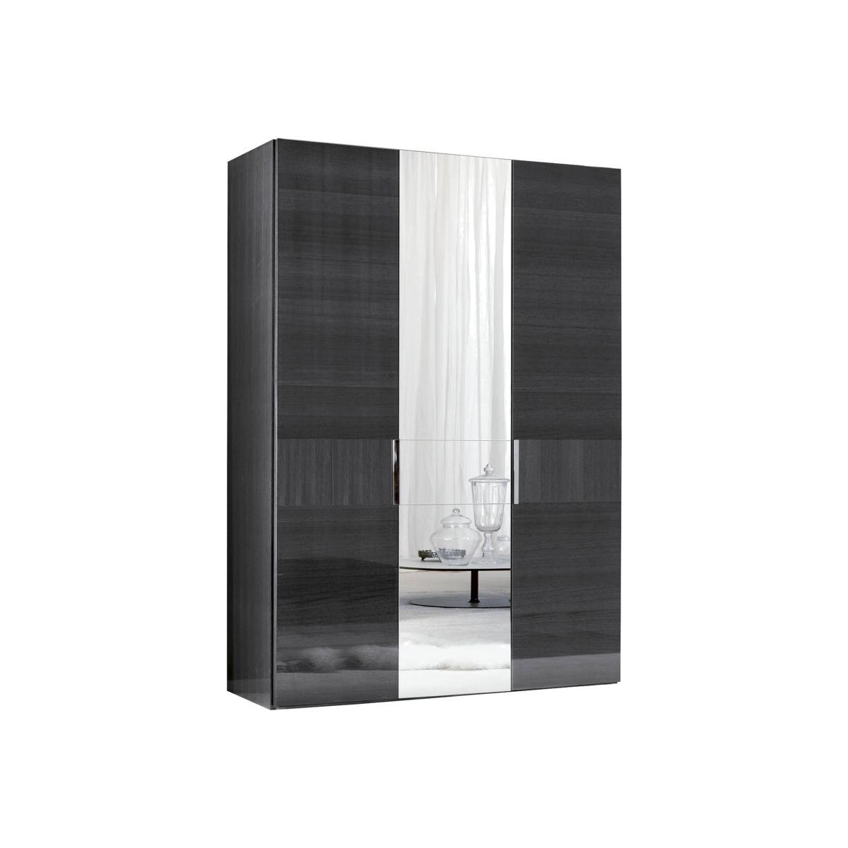 The St Moritz dining collection is as sleek, modern and elegant as you'd expect from prestigious Italian design house ALF. High gloss pedestal tables and cabinets are finished with unique dark grey koto veneers. High backed, luxuriously upholstered chairs with contemporary piping and buttoning detailing complete this glamorous dining collection. Modern high-gloss 3 door wardrobe, beautifully made by Italian furniture makers ALF. Finished high gloss dark grey koto wood veneers, with one central mirrored door. Why you'll love it. Sleek 3-door hinged wardrobe, designed and made in Italy by ALF. Bold, dramatic modern style. Available in 2 height sizes. Stunning high-gloss dark grey koto wood veneers. Central mirrored door, practical for getting ready. Sleek, linear chrome door handles. Great value, exclusive to Furniture Village. What you need to know. One shelf and two hanging rails behind each door. 3 soft-close hinged doors. Optional internal drawers and shelves, available to buy separately. Made from solid wood with a dark grey koto veneer finish. Hairline marks are a natural feature of this furniture's high gloss finish. High gloss surfaces can reveal the polishing process in the form of small scratches. Avoid abrasive cleaners and direct sunlight. Wipe clean with a damp cloth and dry with a soft duster. Furniture can tip over unexpectedly and cause injury. This item shall be fixed to a wall using the anti-tip kit provided with the furniture. Be sure to use the correct wall fixings suitable for the walls in your home. Part of the ALF St Moritz bedroom range.