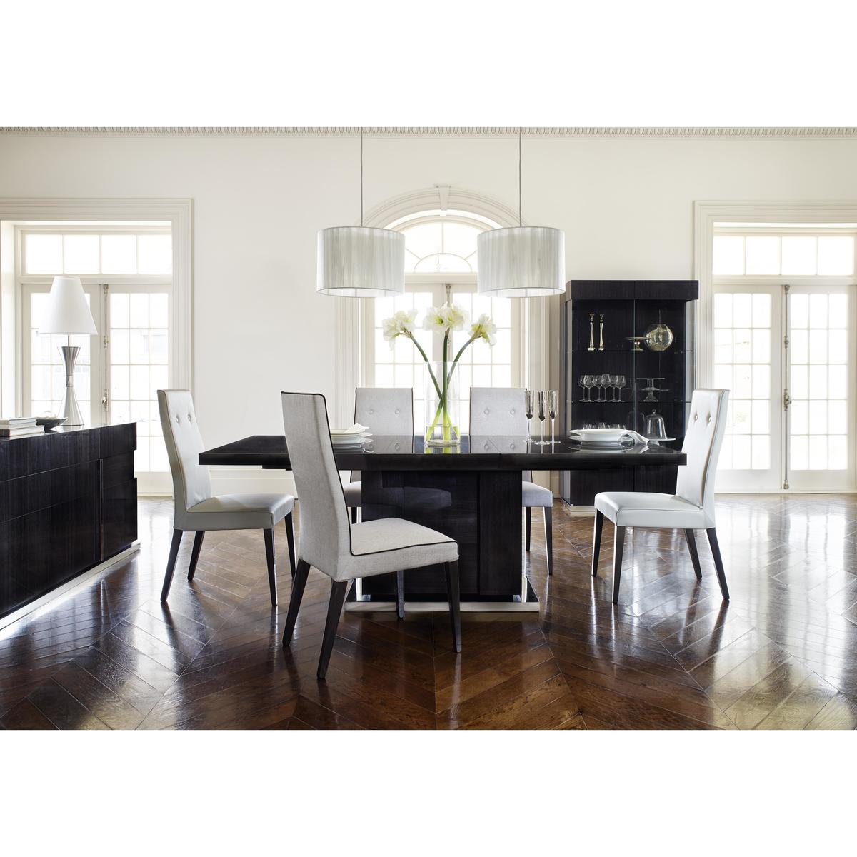 The St Moritz dining collection is as sleek, modern and elegant as you'd expect from prestigious Italian design house ALF. High gloss pedestal tables and cabinets are finished with unique dark grey koto veneers. High backed, luxuriously upholstered chairs with contemporary piping and buttoning detailing complete this glamorous dining collection. The beautifully designed and crafted ALF St Moritz small extending dining table turns any dining room into a haven of modern style and elegance. Sleek and with eye-catching details, this stylish table features a deluxe high-gloss top and dramatic pedestal base, both finished in hardwearing dark grey koto wood veneers. Stylish aluminium detailing along the edge of the table top and a brushed aluminium plinth give this piece an ultra-glamorous feel. It’s designed for relaxed modern living too. The pedestal base makes it easy to seat diners in comfort, and the table itself extends to seat 10 with a smooth extension mechanism and hidden extra leaf. Easy to care for and easy to love, the ALF St Moritz small extending dining table is part of the ALF St Moritz collection of stunning living and dining furniture. A larger dining table – the ALF St Moritz large extending dining table – seats 12. Did you know?. Hairline marks are a natural feature of this furniture's beautiful, high gloss finish.