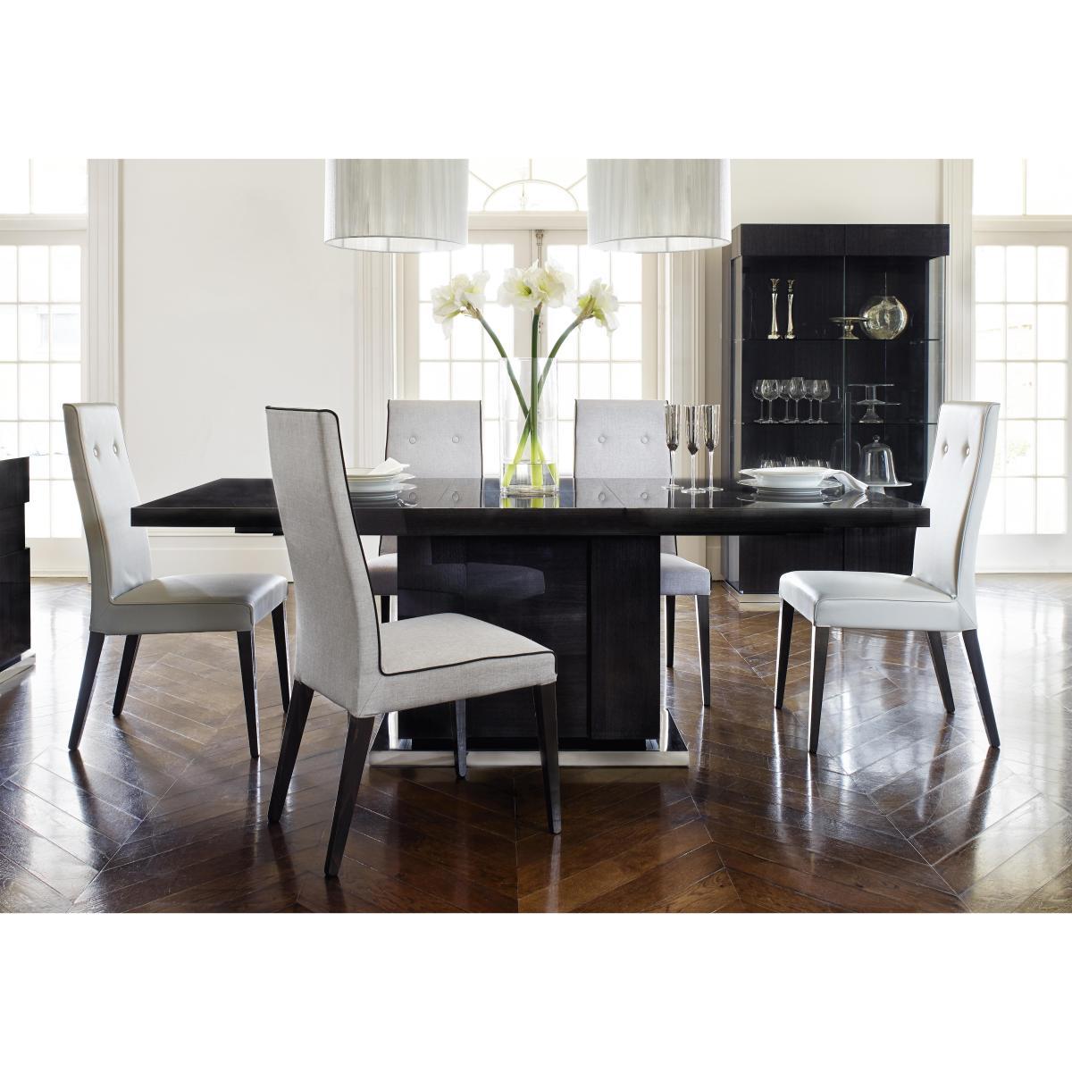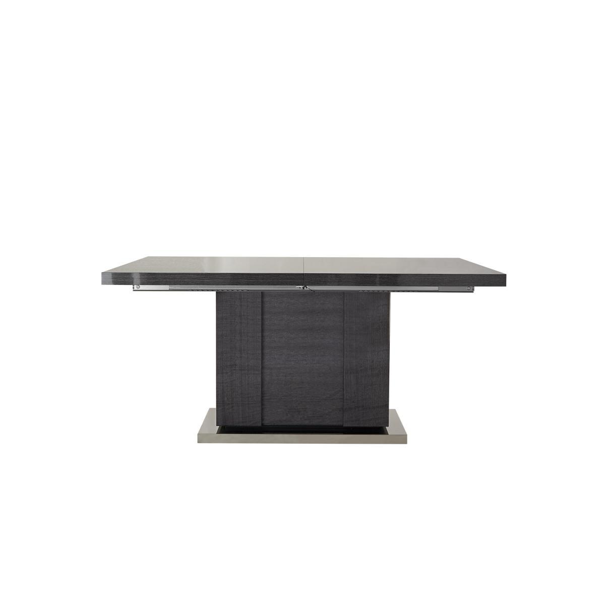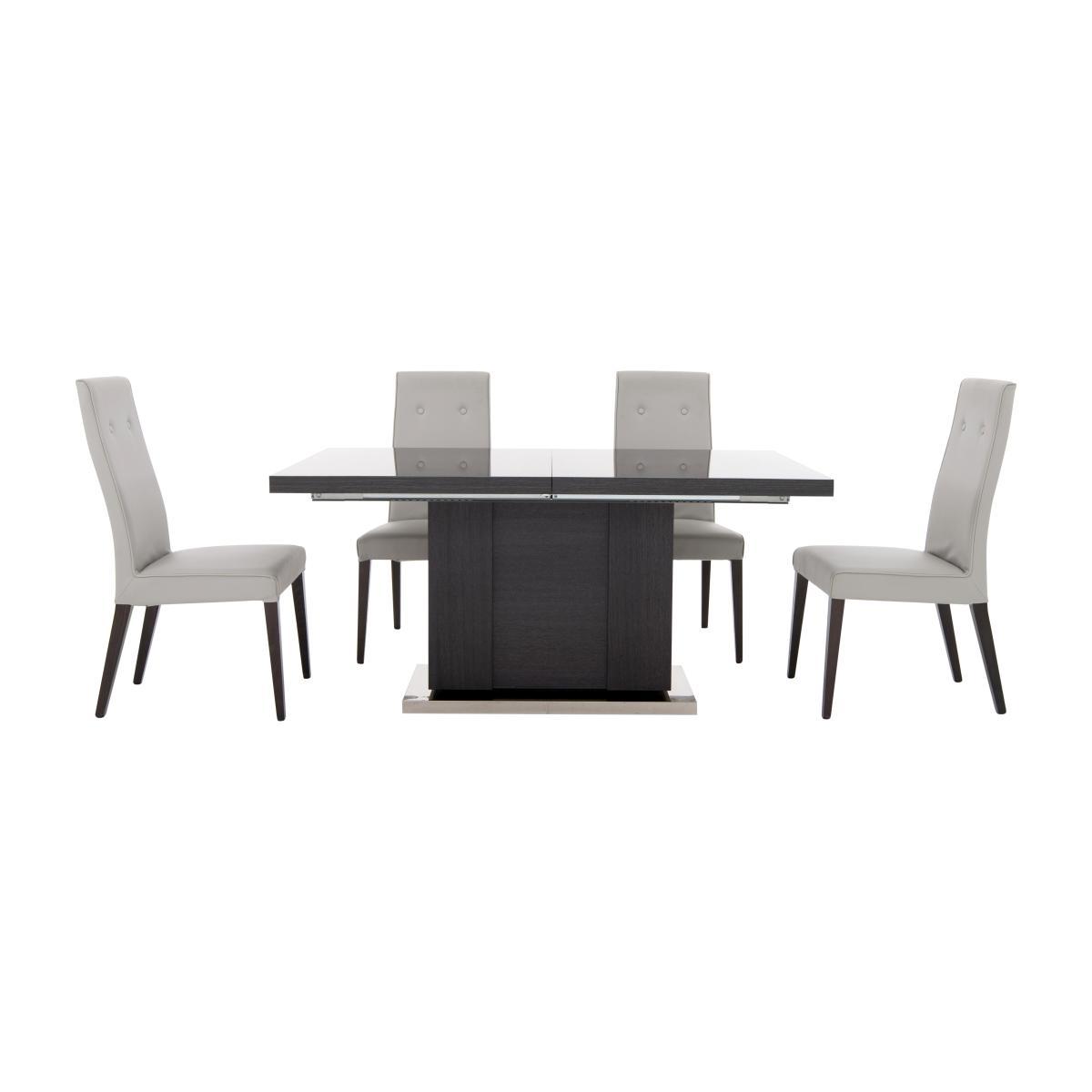 The St Moritz dining collection is as sleek, modern and elegant as you'd expect from prestigious Italian design house ALF. High gloss pedestal tables and cabinets are finished with unique dark grey koto veneers. High backed, luxuriously upholstered chairs with contemporary piping and buttoning detailing complete this glamorous dining collection. Everything about the ALF St Moritz small extending dining table and 4 faux leather dining chairs set says high-end luxurious Italian style. This glamorous dining set comprises a superbly sleek extending dining table with a hidden extra leaf that seats up to eight. It’s finished with gorgeous dark grey koto wood veneers with aluminium accents, and has a striking pedestal base and a brushed aluminium plinth. The four accompanying high-backed chairs are equally elegant. Comfortably padded and fully upholstered, chairs are gently curved and have dark grey koto wood veneer legs. The pale grey faux leather upholstery is embellished with simple buttoning and contrasting piping. Part of the St Moritz collection of modern Italian-made living and dining furniture, the ALF St Moritz small extending dining table and 4 faux leather dining chairs set is the perfect match for your fashionable contemporary home. Complete the look with the ALF St Moritz sideboard. Did you know?. Hairline marks are a natural feature of this furniture's beautiful, high gloss finish.