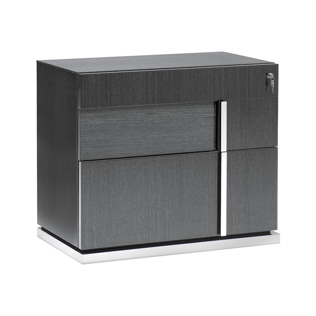 The St Moritz dining collection is as sleek, modern and elegant as you'd expect from prestigious Italian design house ALF. High gloss pedestal tables and cabinets are finished with unique dark grey koto veneers. High backed, luxuriously upholstered chairs with contemporary piping and buttoning detailing complete this glamorous dining collection. The ALF St Moritz left-hand filing cabinet is so good looking, you could have it in your living room. Add to the storage with the accompanying hutch top, available to buy separately. Sleek, modern high-gloss filing cabinet from ALF. Practical storage, beautifully designed to look good anywhere. With stunning dark grey koto wood veneers. And linear chrome detailing. Plenty of room for hanging files. Designed and made in Italy. Great value, exclusive to Furniture Village. What you need to know. Made from solid wood with a dark grey koto veneer finish. Includes 2 drawers, one is sized to fit hanging files. Linear chrome detailing includes the drawer handles. Hairline marks are a natural feature of the high gloss finish. High gloss surfaces can reveal the polishing process in the form of small scratches. Avoid abrasive cleaners and direct sunlight. Wipe clean with a damp cloth and dry with a soft duster. Furniture can tip over unexpectedly and cause injury. This item shall be fixed to a wall using the anti-tip kit provided with the furniture. Be sure to use the correct wall fixings suitable for the walls in your home. Part of the ALF St Moritz range.